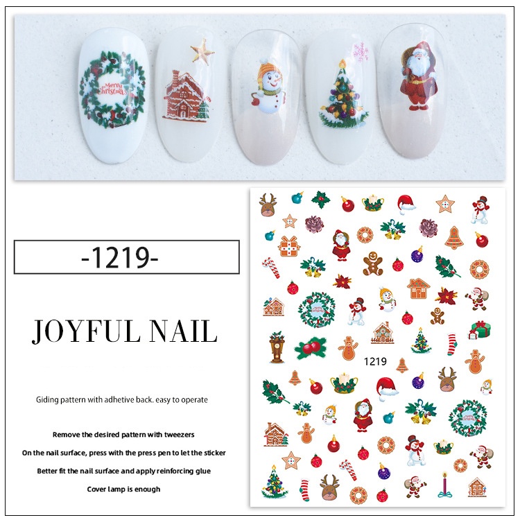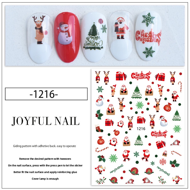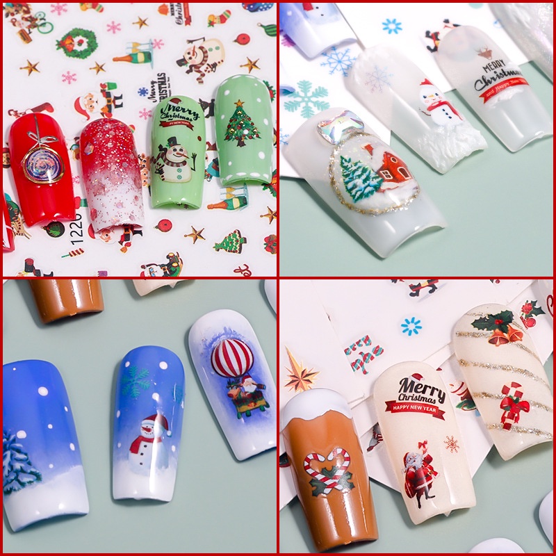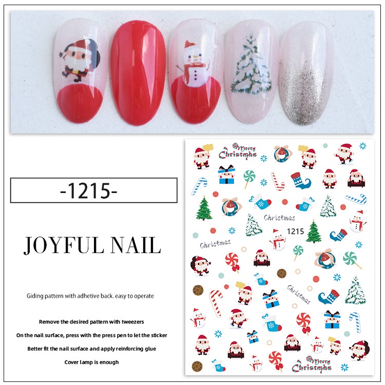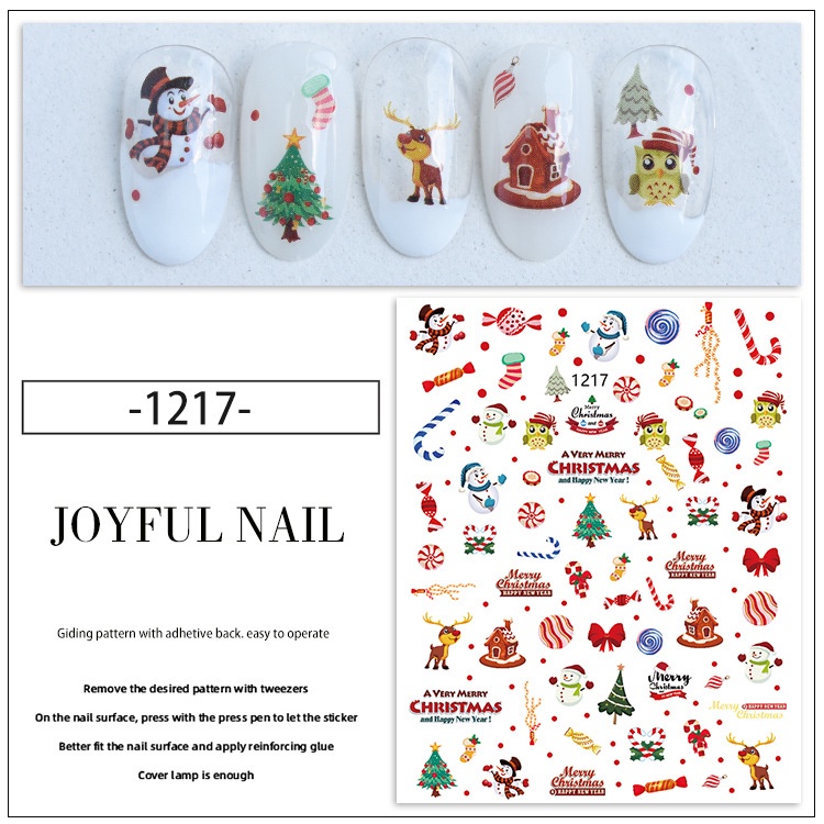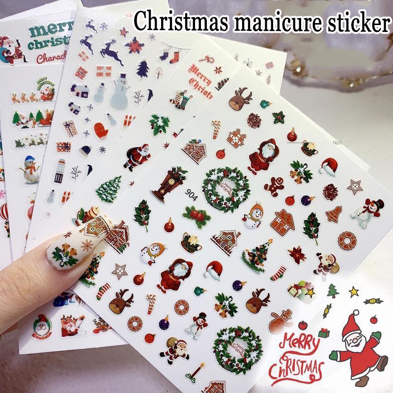 สติกเกอร์ติดเล็บ มีกาวในตัว ลายการ์ตูนคริสต์มาส กวางเรนเดียร์ สโนว์แมน สําหรับตกแต่งเล็บ