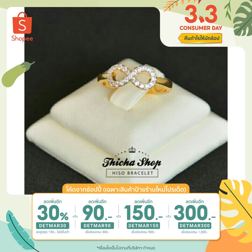[เหลือ74.- เมื่อเก็บโค้ดหน้าร้าน + เก็บโค้ดส่งฟรี] แหวนอินฟินิตี้ งานชุบทอง24k