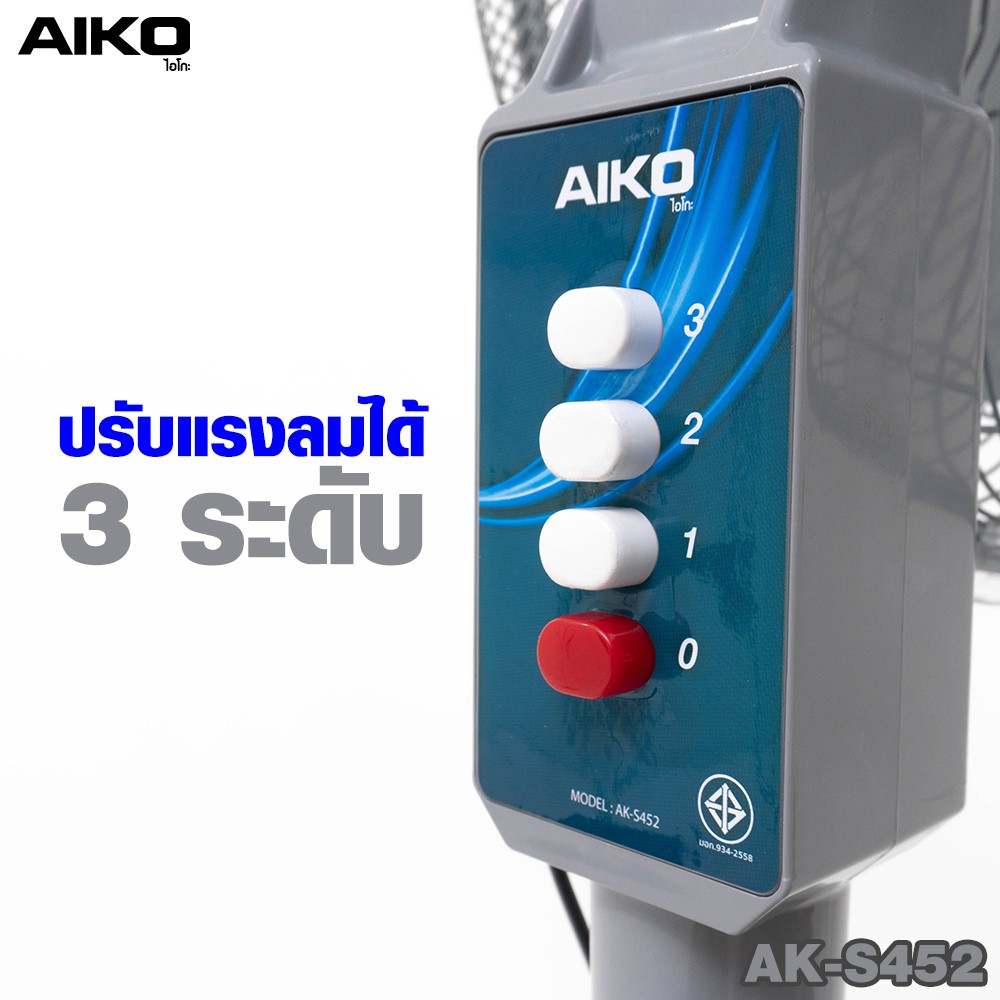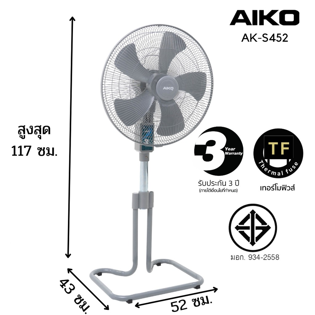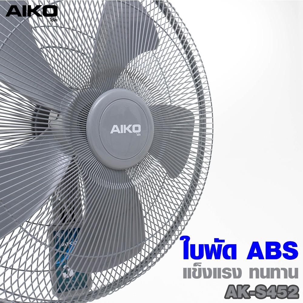 AIKO AK-S452 สีเทา พัดลมสไลด์ 18 นิ้ว ใบพัดพลาสติก PP ห้าแฉก ***รับประกันมอเตอร์ 4 ปี