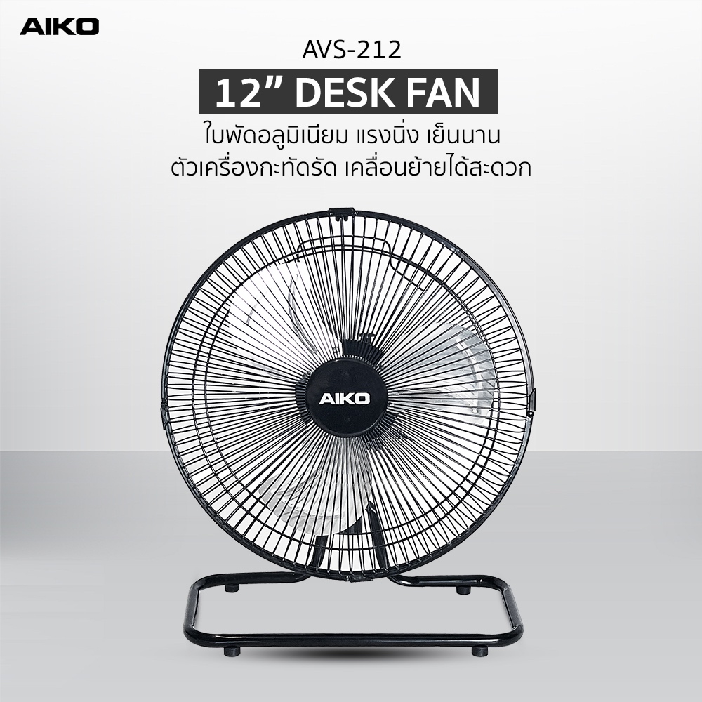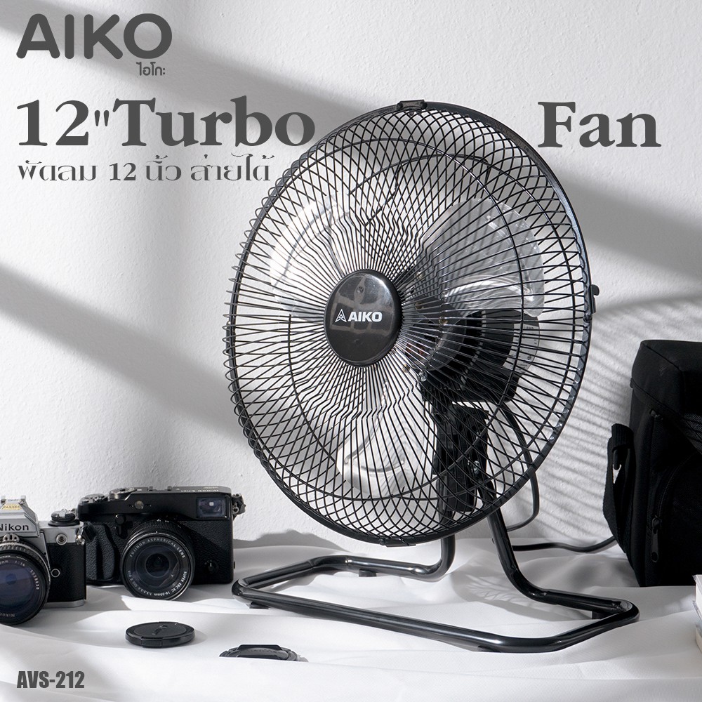 AIKO AVS-212 พัดลมใบพัดอลูมิเนียม 12 นิ้ว Mini Turbo ส่ายได้ พัดลมเล็ก ***รับประกันมอเตอร์ 2 ปี
