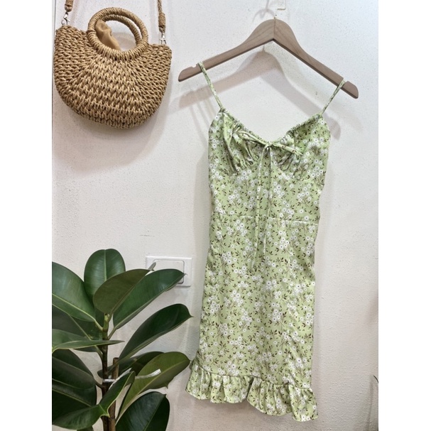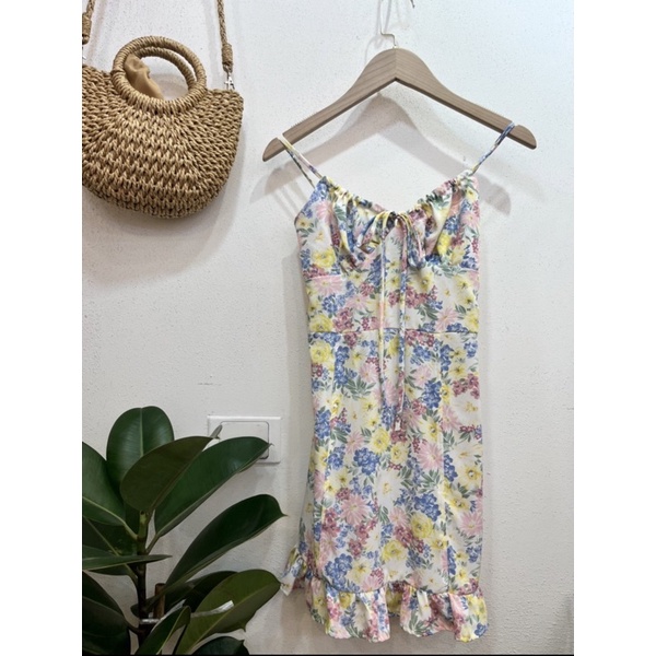 เดรสสั้น ลายดอก เนื้อผ้าชีฟองญี่ปุ่น ระบายชาย