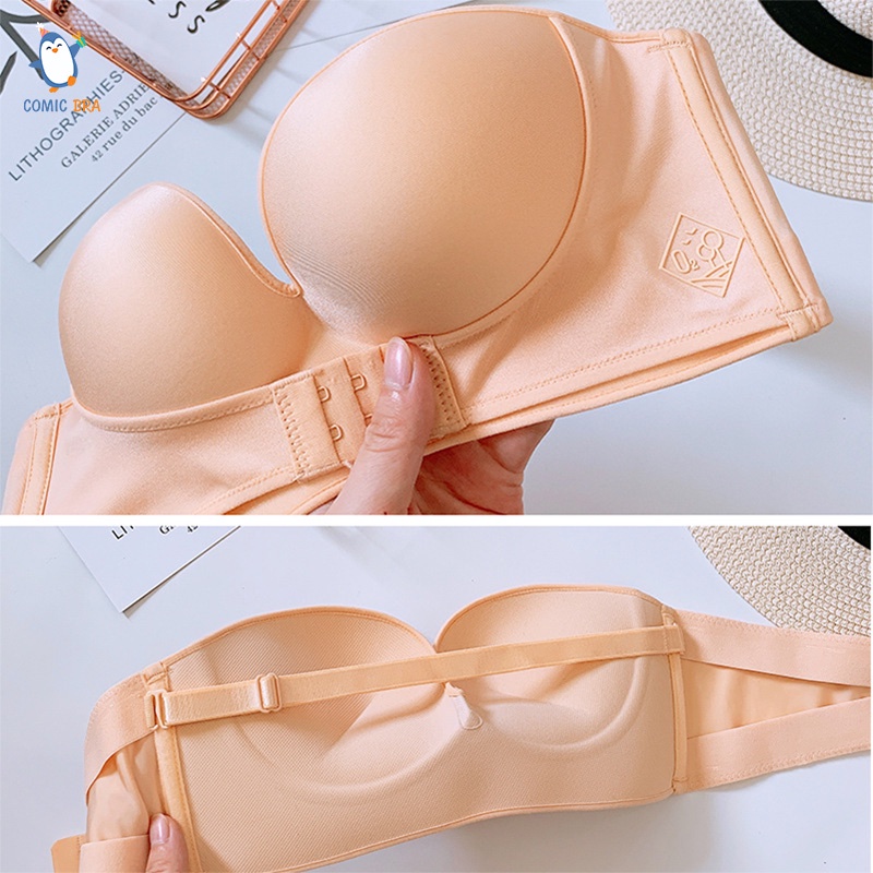 Comicbra บราไร้สาย ไร้โครง ไร้ขอบ แบบเกาะอก ดันทรง ตะขอหน้า ตะขอหลังเซ็กซี่ 32-38