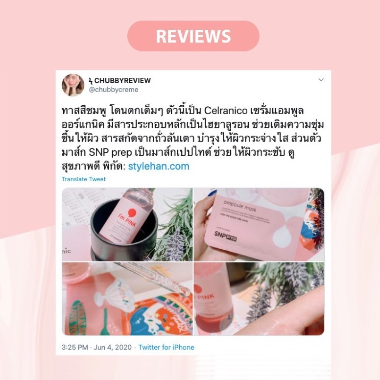 Celranico I'm Pink Regenerative Firming Ampoule เซรั่มแอมพูลออร์แกนิค ช่วยฟื้นฟูให้ผิวขาวใส[EXP 2025-12-20]