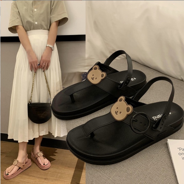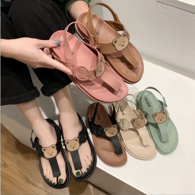 รองเท้าแตะรัดส้น รูปหมีน่ารัก ยางนิ่มใส่สบาย เบอร์36-40 D20-2025