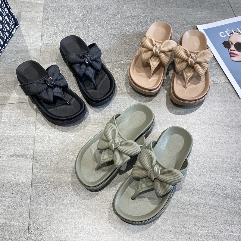 รองเท้าแฟชั่นผู้หญิงแบบมีหู มีโบว์ ยางนิ่มใส่สบาย รุ่น1608