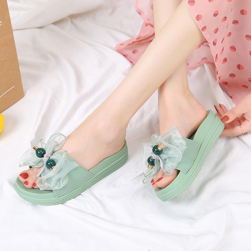 รองเท้าแตะแบบสวม มีโบว์ สูง3.5cm ยางนิ่มใส่สบายJSL-895