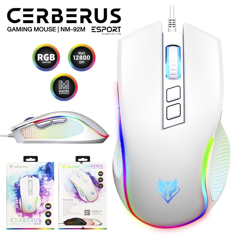 NUBWO NM92M Gaming Mouse เมาส์เกมมิ่ง เมาส์มาโคร มี 3 สี ดำ/ขาว/ชมพู ของแท้ รับประกัน 1 ปี
