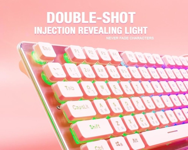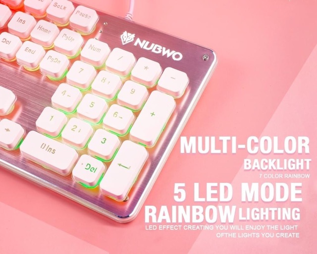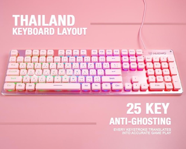 NUBWO NK-32 FORTUNE PINK EDITION คีย์บอร์ดเล่นเกมส์ สีชมพู ไฟสีรุ้ง🌈