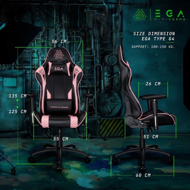 EGA TYPE G4 GAMING CHAIR เก้าอี้เกมมิ่ง ขาเหล็ก เบาะหนา ของแท้ ประกัน 1ปี