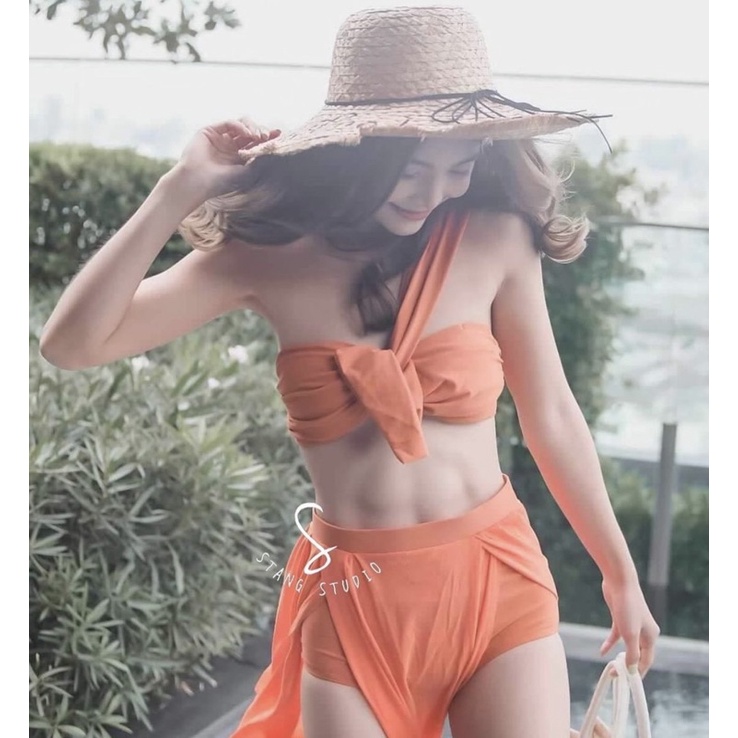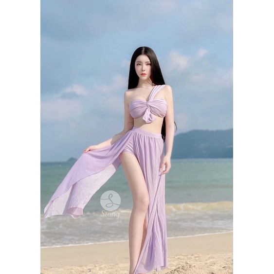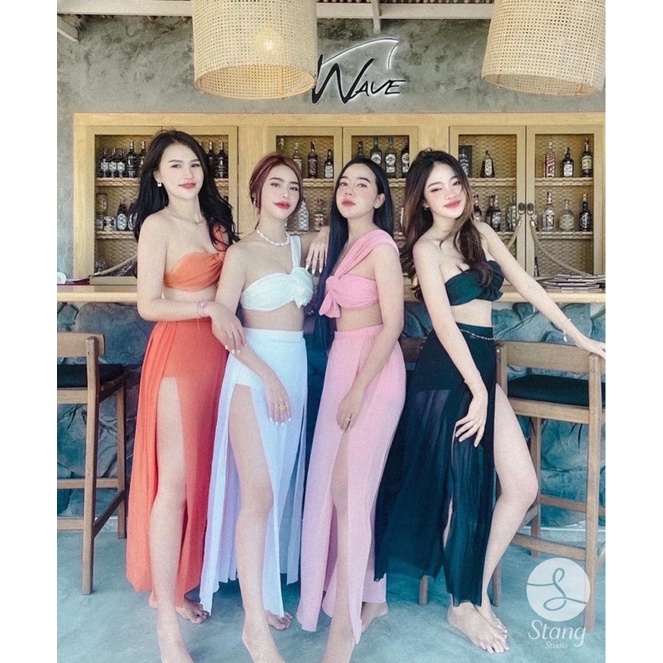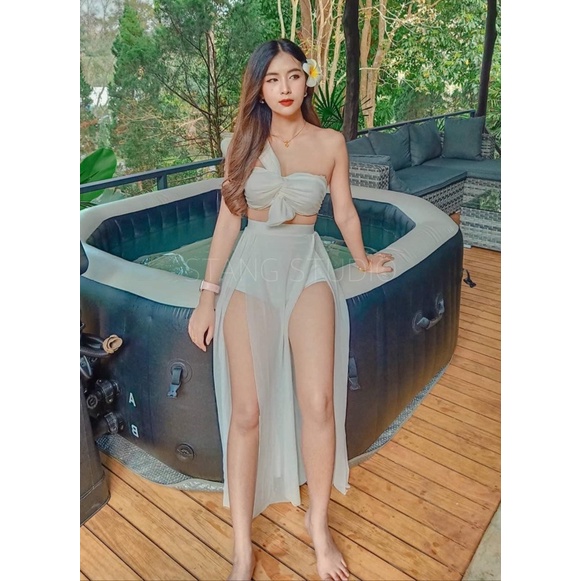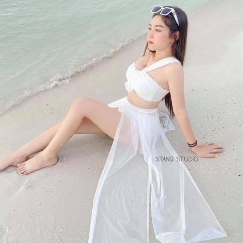 A1601ชุดว่ายน้ำเดินชายหาด สาวมินิ สาวอวบอ้วน กระโปรงซีทรู เอวสูง 3 ชิ้น งานlmited เฉพาะทางร้านเท่านั้น💗 พร้อมส่งในไทย 🇹🇭