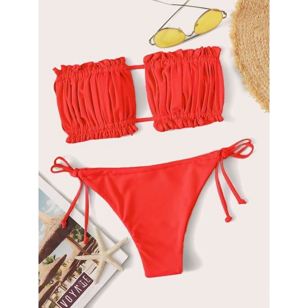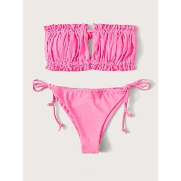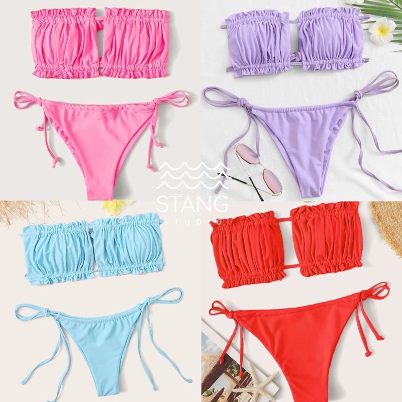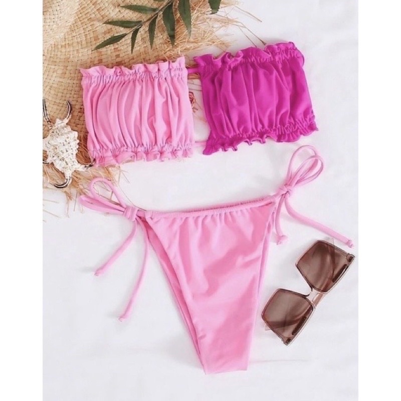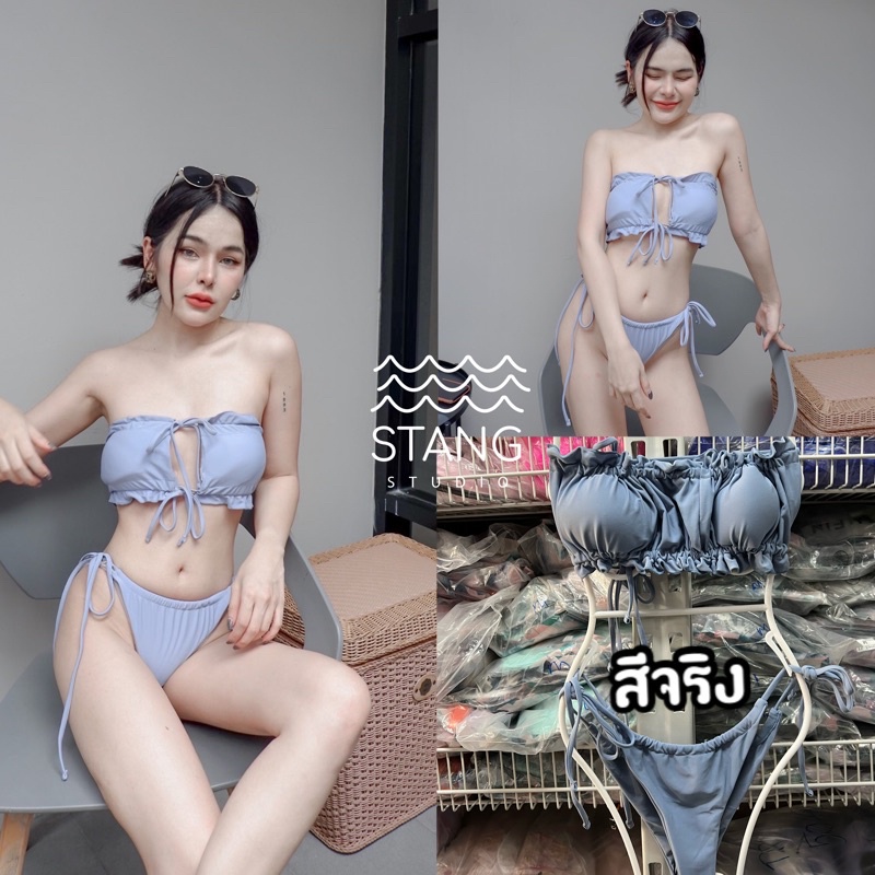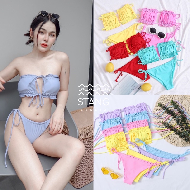 ชุดว่ายน้ำ ทูพีช แวกอกดาวิ อกจีบแวกอกได้ตามใจชอบ สามารถรูดมาติดกันได้ มีฟองน้ำ พร้อมส่ง