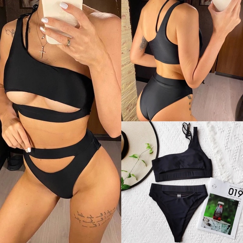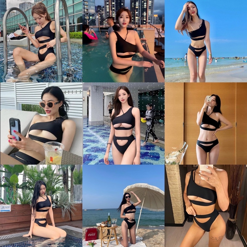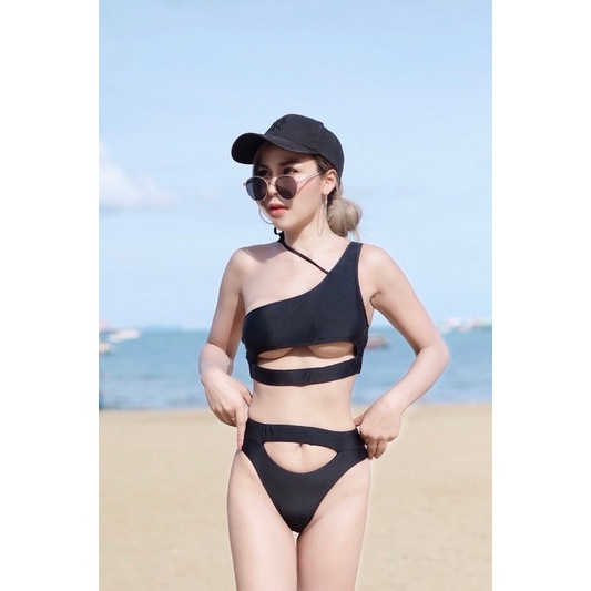BIKINI เซ็กซี่สีดำรุ่นคุณจ๊ะ 🔥 รุ่นนี้hotที่เกาหลีมาก 🔥แอบโชว์เนินอกล่างและหน้าท้องช่วงสะดือ มีฟองน้ำ พร้อมส่งในไทย🇹🇭