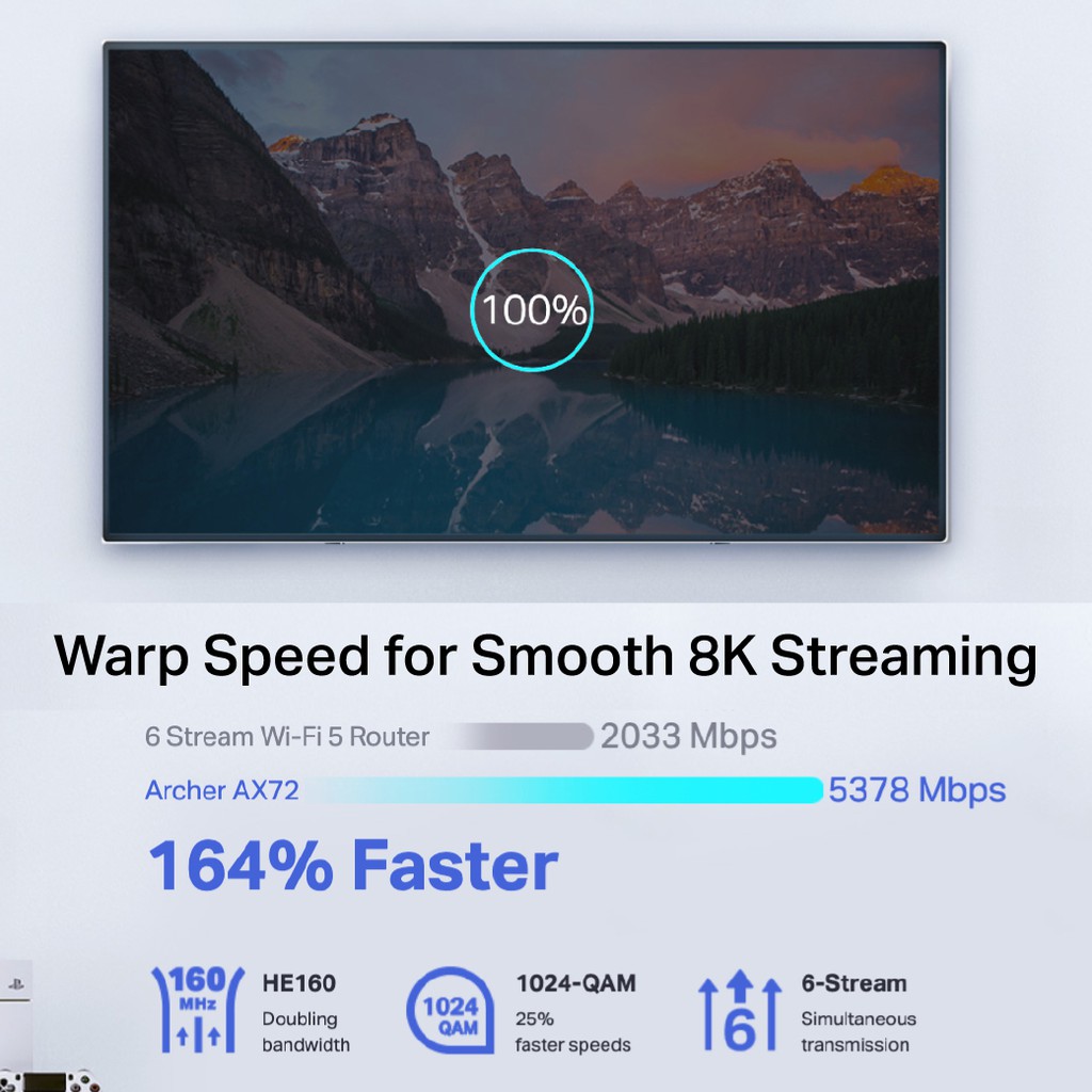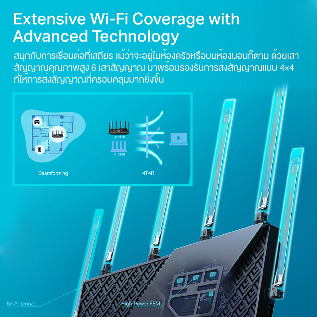 TP-Link Archer AX72 AX5400 Dual-Band Gigabit Wi-Fi 6 เราเตอร์เพื่อ 8K Streaming เกมส์ออนไลน์ พร้อม 6 เสาสัญญาณคุณภาพสูง
