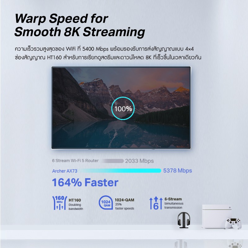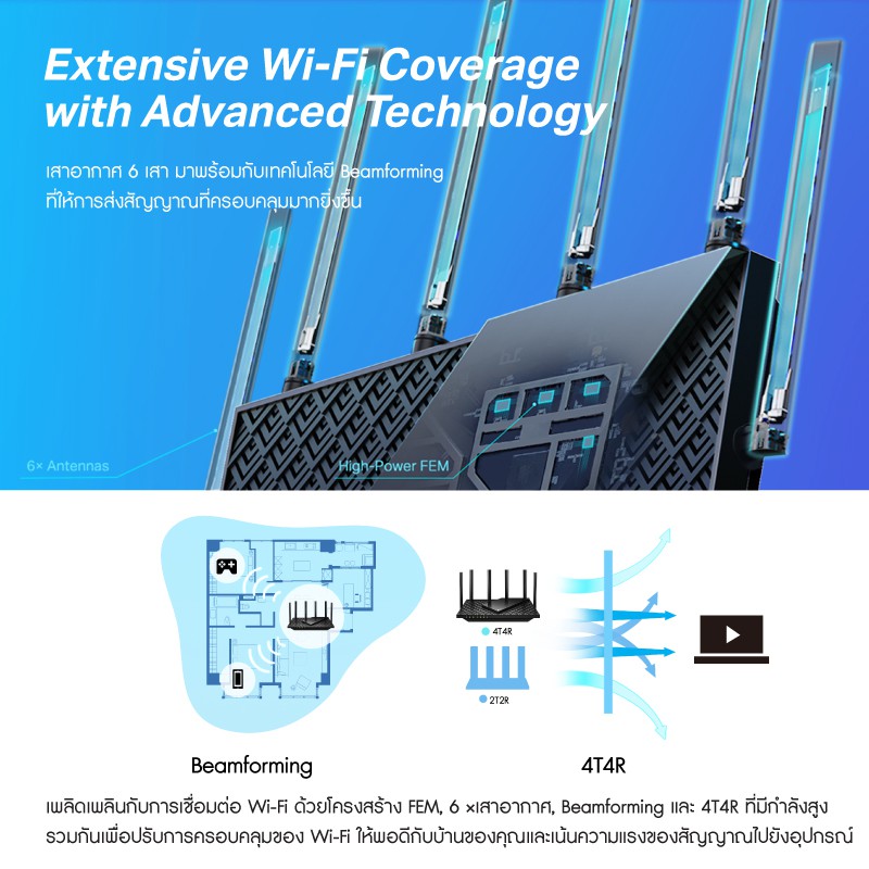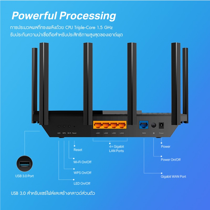 TP-Link Archer AX73 เราเตอร์ AX5400 Dual-Band Gigabit Wi-Fi 6 CPU Triple-Core 1.5 GHz 6 เสาสัญญาณ