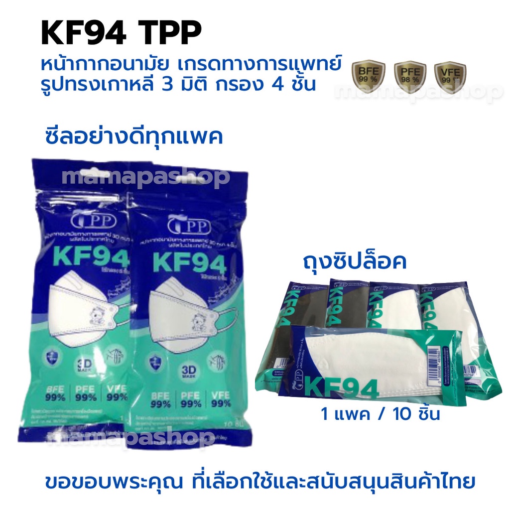 New! TPP KF94 MasK ถุงซิปล็อค 1 แพค 10 ชิ้น เกรดทางการแพทย์ มี อย. หน้ากากอนามัยทรงเกาหลี แมสทรงเกาหลี ทรง3D กรอง4 ชั้น