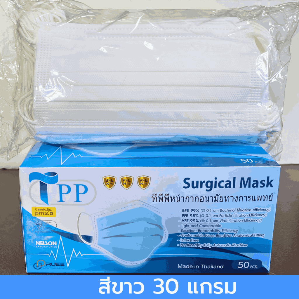 New!!หน้ากากอนามัยทางการแพทย์ TPP ของแท้ 3 ชั้น หนา 30 แกรม แมสทางการแพทย์ แมสปิดปาก แมสปิดจมูก VFE99% BFE99% PFE98%