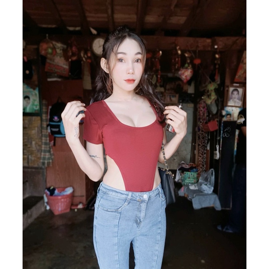 🌈Spinnyhouse🌈 บอดี้สูท แขนสั้นเว้าเอว ‼️เป้าแกะได้ กระดุมแป็ก‼️ ‼️ผ้า2ชั้นช่วงบน‼️ ♥️Bodysuit♥️ เว้าเอว 🥰 รุ่น 309 A2