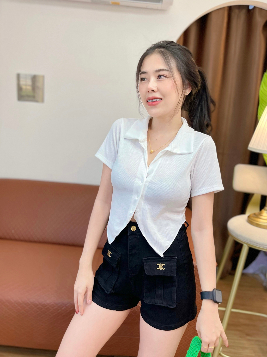 🌈 SpinnyHouse 🌈ครอปผ้าร่อง เสื้อแขนสั้น ดีเทลช่วงปลายเสื้อสายเหลี่ยม งานตามหา ผ้าอย่างดีไม่บาง ทรงสวย 💫 รุ่น เชิ้ตโบนัส
