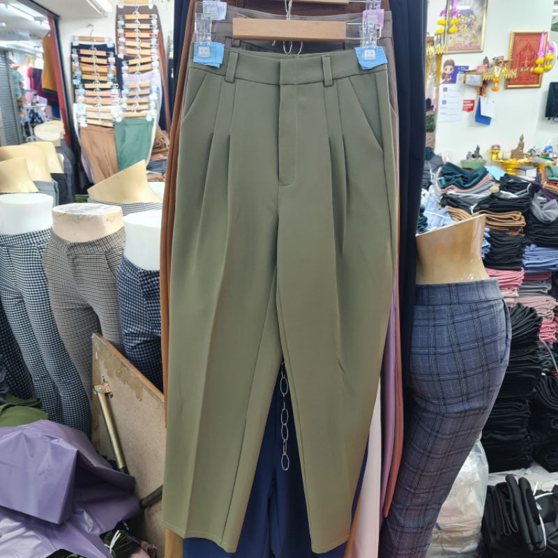 🌈spinnyhouse🌈 กางเกง7ส่วน กางเกงทรงบอยเอวสูง ‼️ผ้าไอวี่หรือเปเป้‼️ ตะขอหน้า มีกระเป๋า กางเกงกระบอก A102A