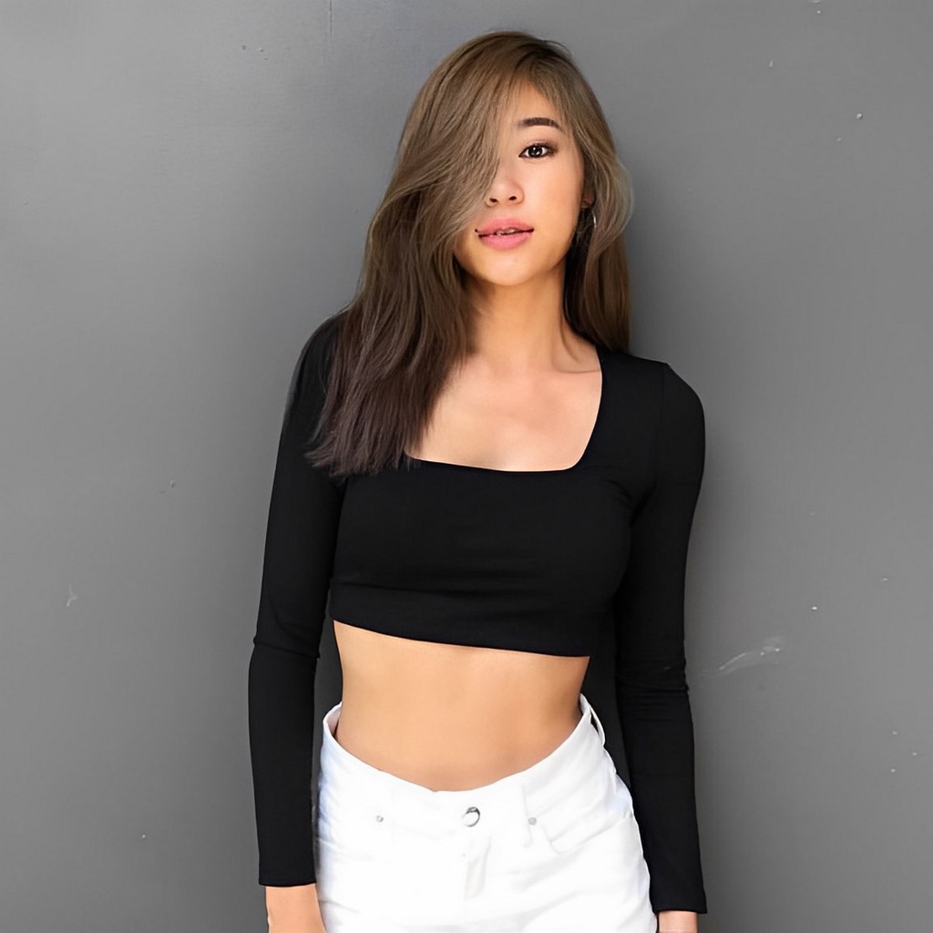 🌈SpinnyHouse🌈 เสื้อคอเหลี่ยม ครอปแขนยาว💕💕CROPTOP ✅ผ้าเรยอน2ชั้น✅ครอปคอเหลี่ยม‼️เสื้อเรยอน เสื้อครอปแขนยาว sq1 191 A401B