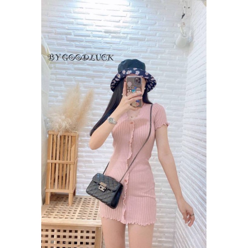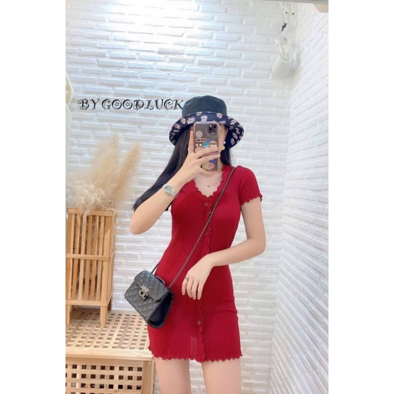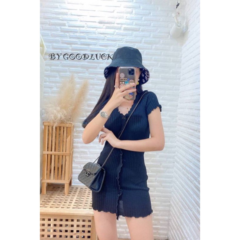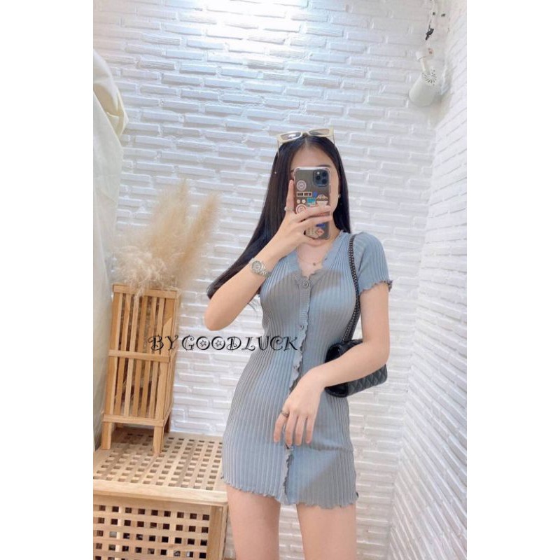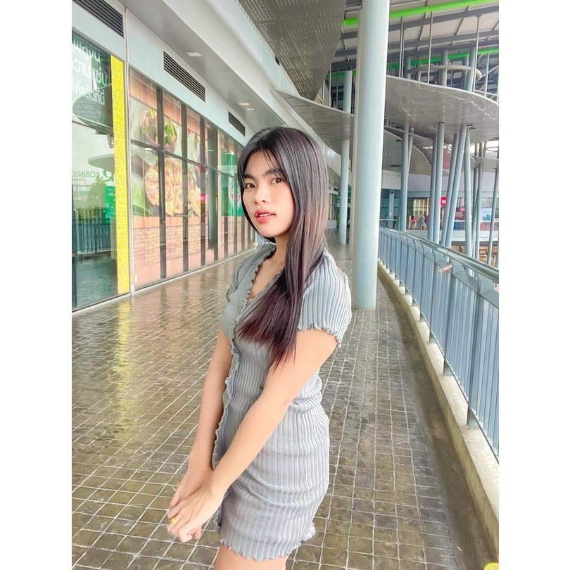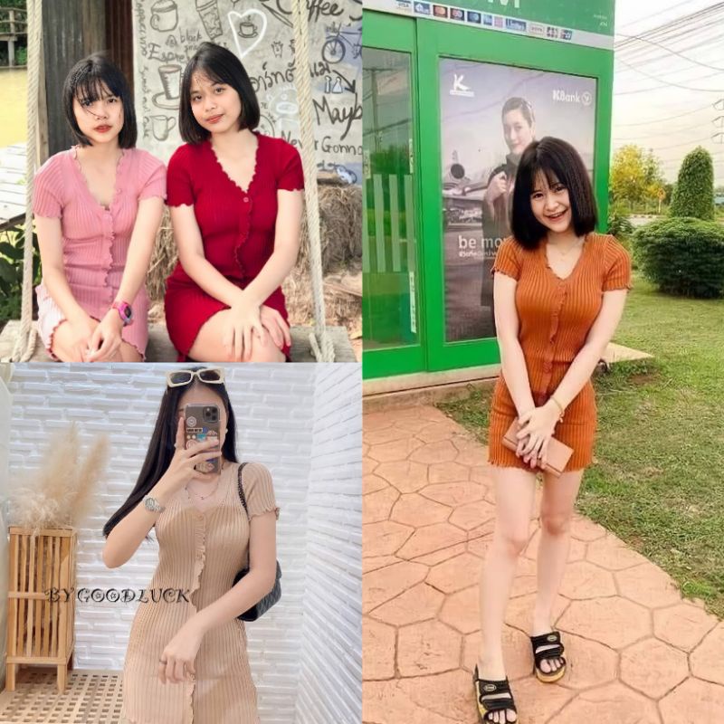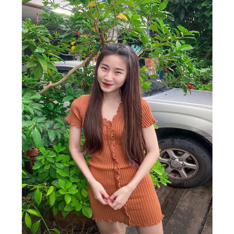 🌈SpinnyHouse🌈 มินิเดรส ผ้าไหมพรม ‼️งานตามหา ขายดีมาก‼️ทรงวีหน้าระบายผ้าร่องกระดุม 🌈รุ่น แซกระบาย E403A