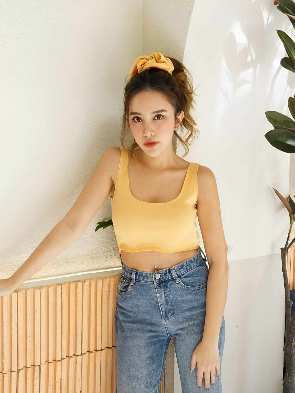 🌈SpinnyHouse🌈 เสื้อกล้ามครอป แขนกุด ผ้าร่อง ที่สุดของความคิ้วท์ คอเหลี่ยม 😁😁รุ่น กล้าม P301C