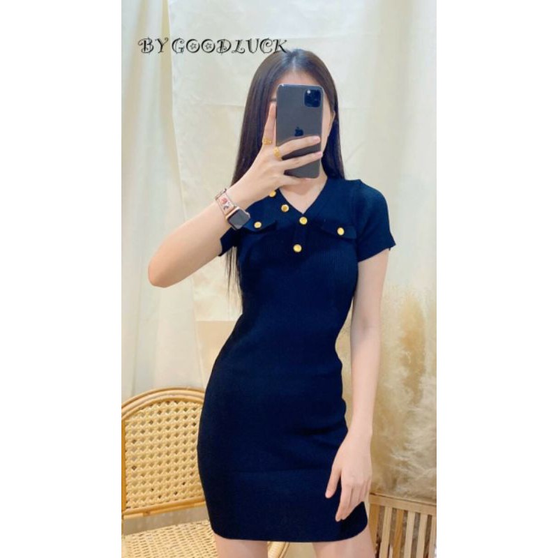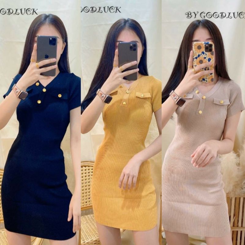 🌈SpinnyHouse🌈 เดรสสั้น แต่งกระดุม ใส่สบาย 😍มีความรัดรูปที่เพิ่มเติ่มความเผ็ชช เดรส 🥰รุ่น แซก กระดุมร่อง H303A