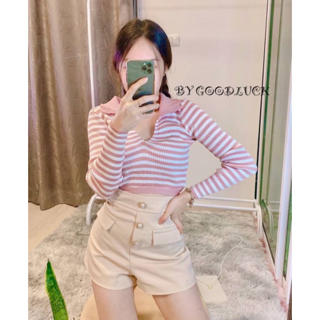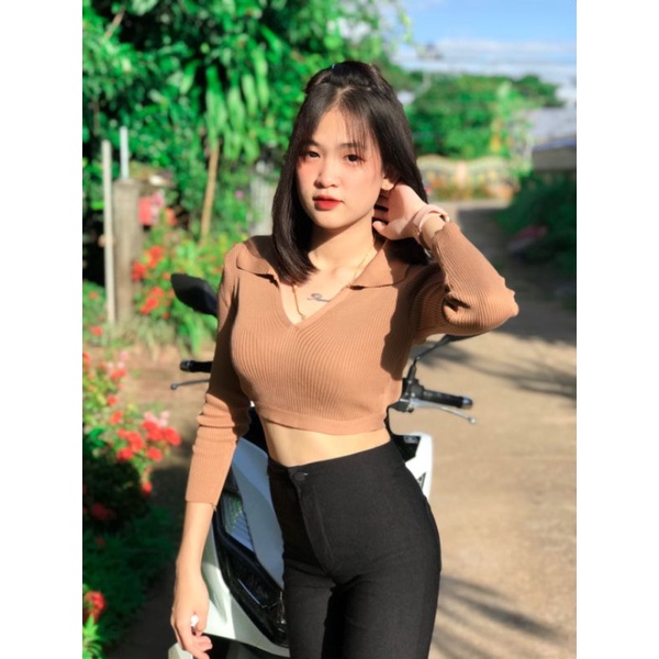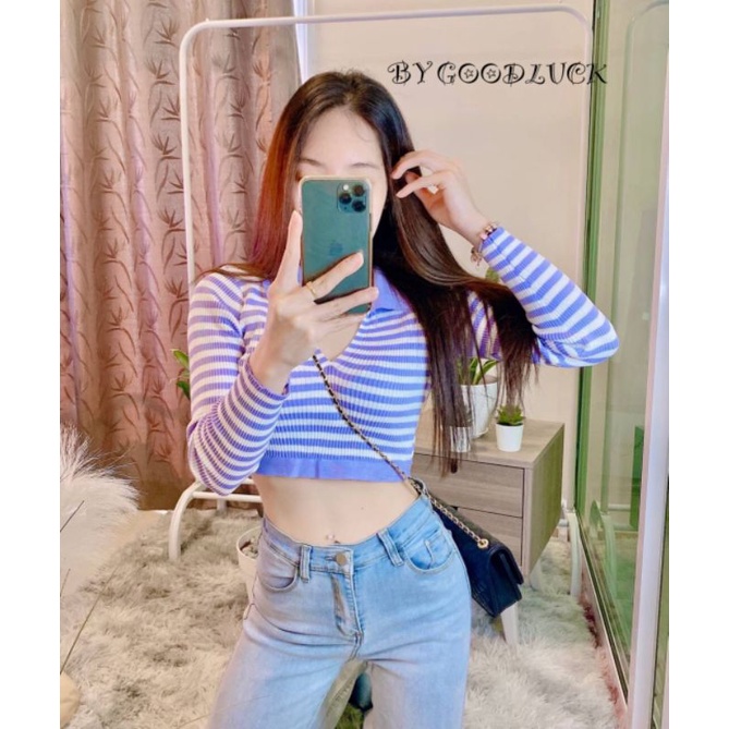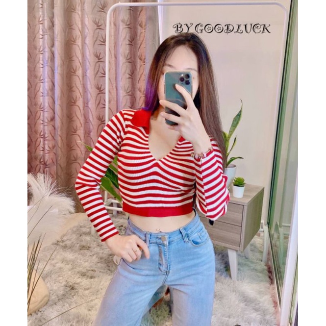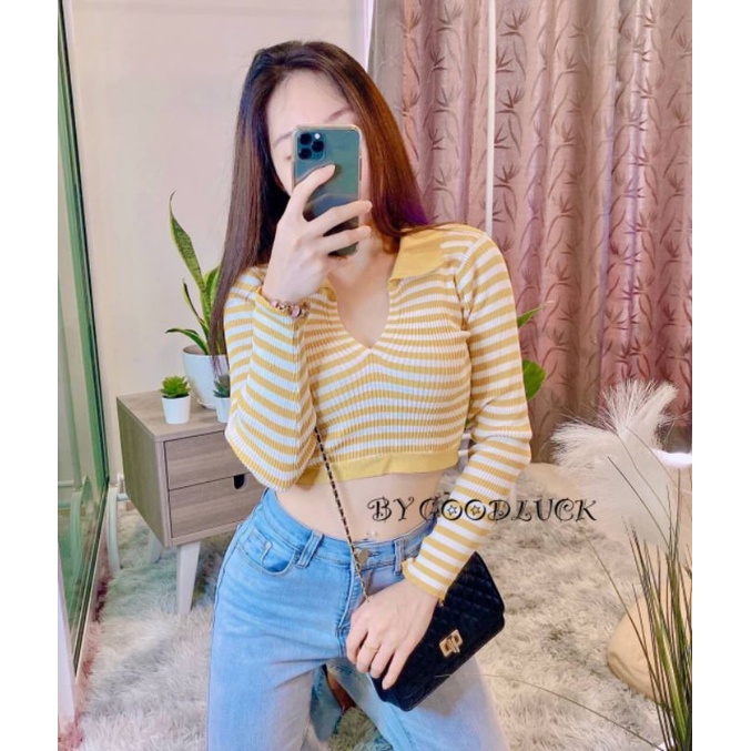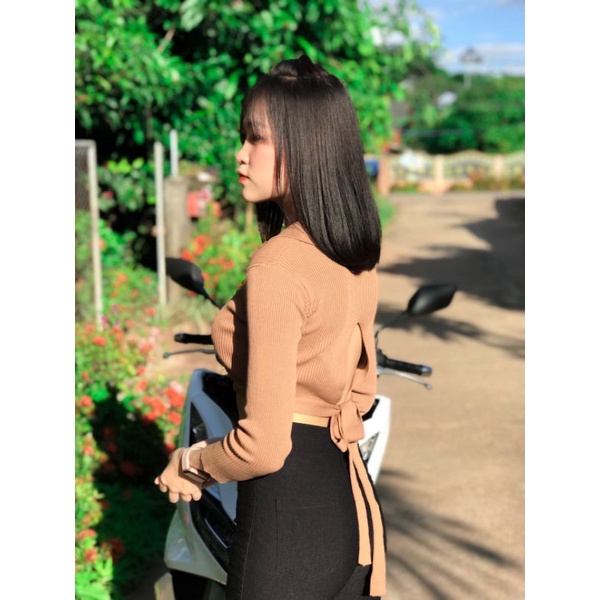 🌈SpinnyHouse🌈 เสื้อเว้าหลัง ครอปคอวีแอบโชว์ร่องนิดๆ เว้าหลัง‼️ผูกแกะได้‼️ ข้าวปุ้นผูกหลัง ข้าวปุ้น C603A B201B
