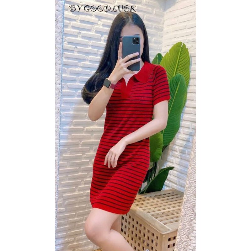 🌈SpinnyHouse🌈 เดรสไหมพรม ชุดลายริ้ว✅ขายดีมากจ้ารุ่นนี้✅ แซกลายริ้ว เดรสลายริ้ว❤️💚❤️เดรสโปโล ♥️รุ่น แซกโปโลริ้ว H301B