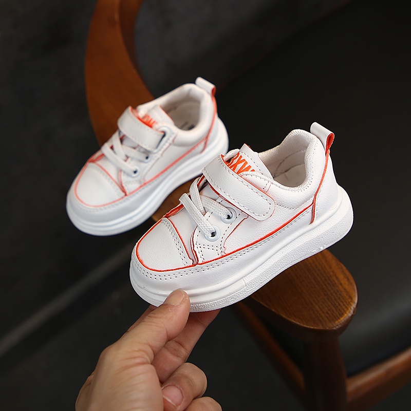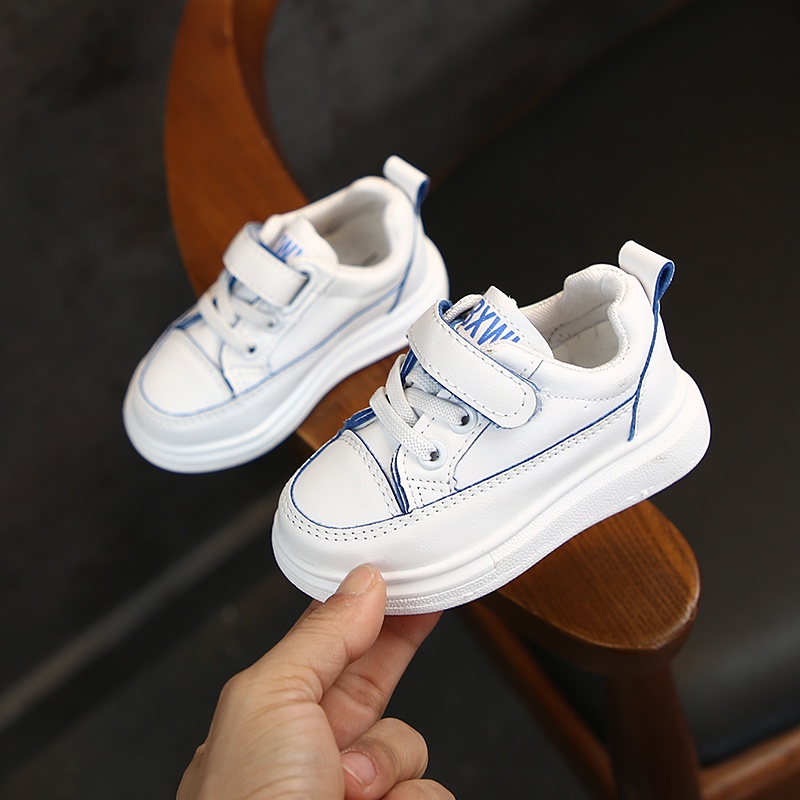 รองเท้าผ้าใบ ลําลอง สําหรับเด็ก หนัง Pu ส้นแบน ขนาด 21-30
