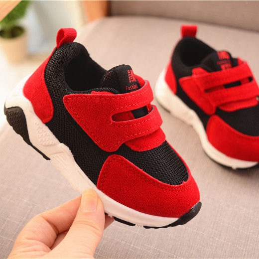 รองเท้าผ้าใบ กีฬา หนังนิ่ม แบบแปะ สําหรับเด็ก 1-3 ปี