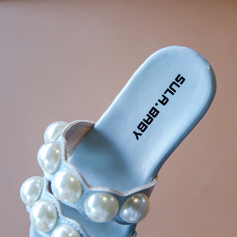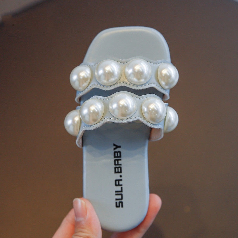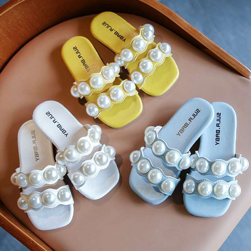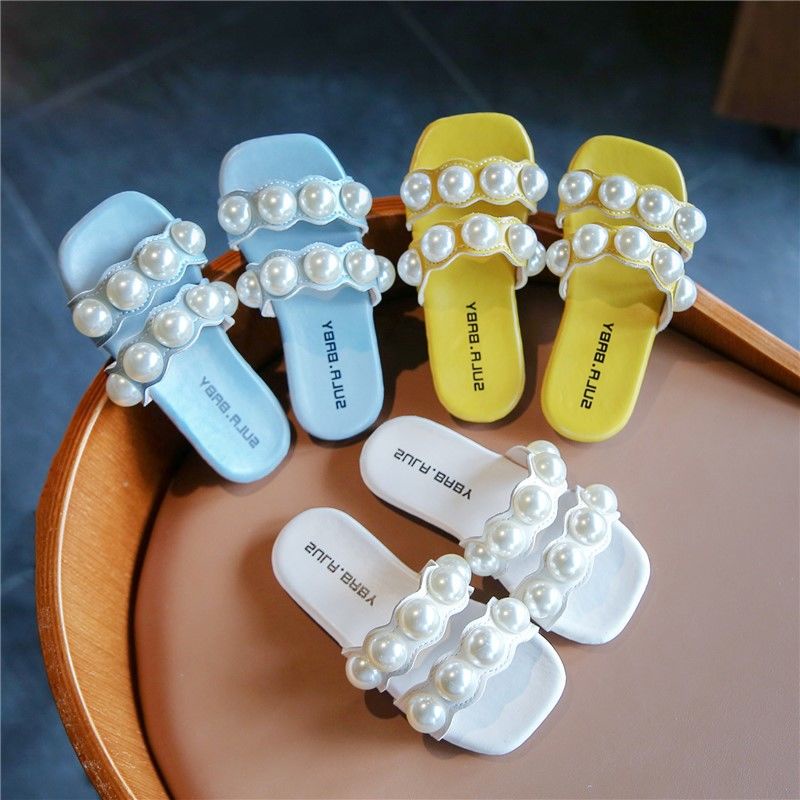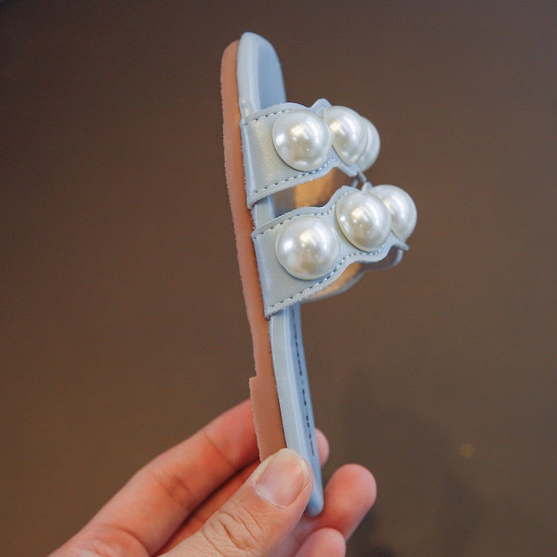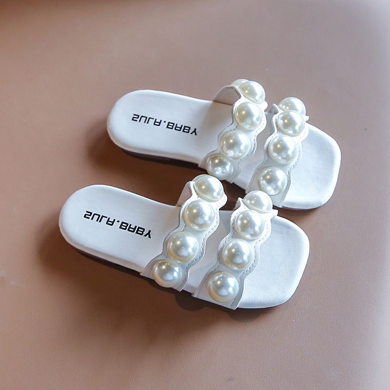 รองเท้าแตะ หนัง PU แบบนิ่ม ประดับมุก ป้องกันการลื่น แฟชั่นสําหรับเด็กผู้หญิง อายุ 1-6 ปี