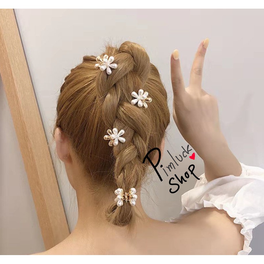 [พร้อมส่ง] กิ๊บหนีบผมดอกไม้เดซี่ประดับมุกขนาดเล็กน่ารัก กิ๊บดอกไม้ กิ๊บมุก
