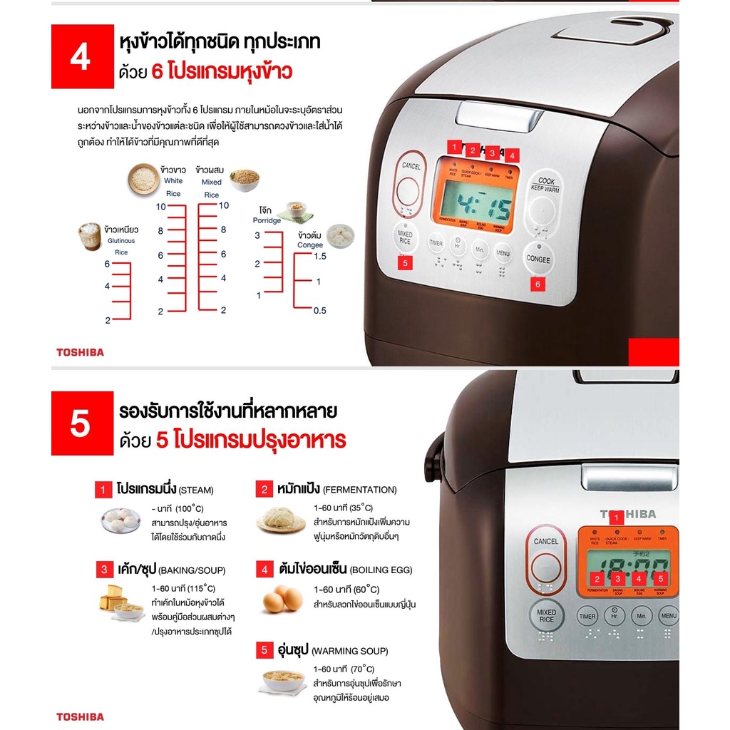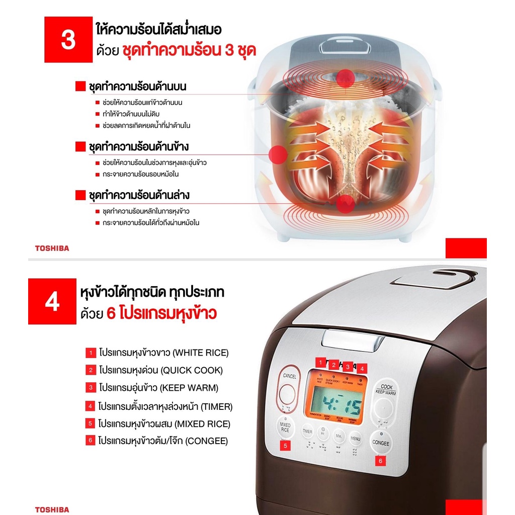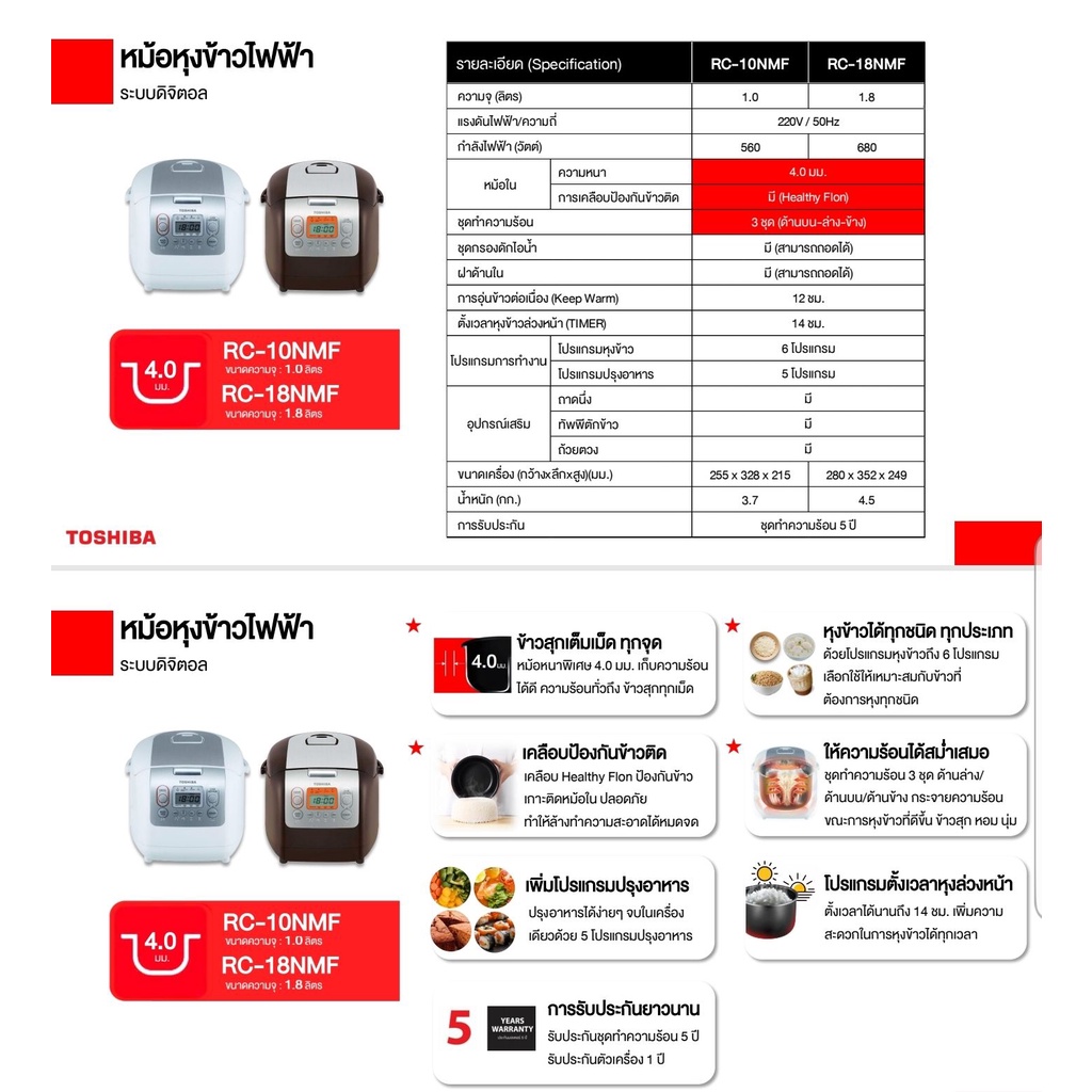 TOSHIBA หม้อหุงข้าวดิจจิตอล รุ่น RC-10NMF 1 ลิตร สีขาว หม้อในหนาพิเศษ ( RK522166 RZ-D10VF )