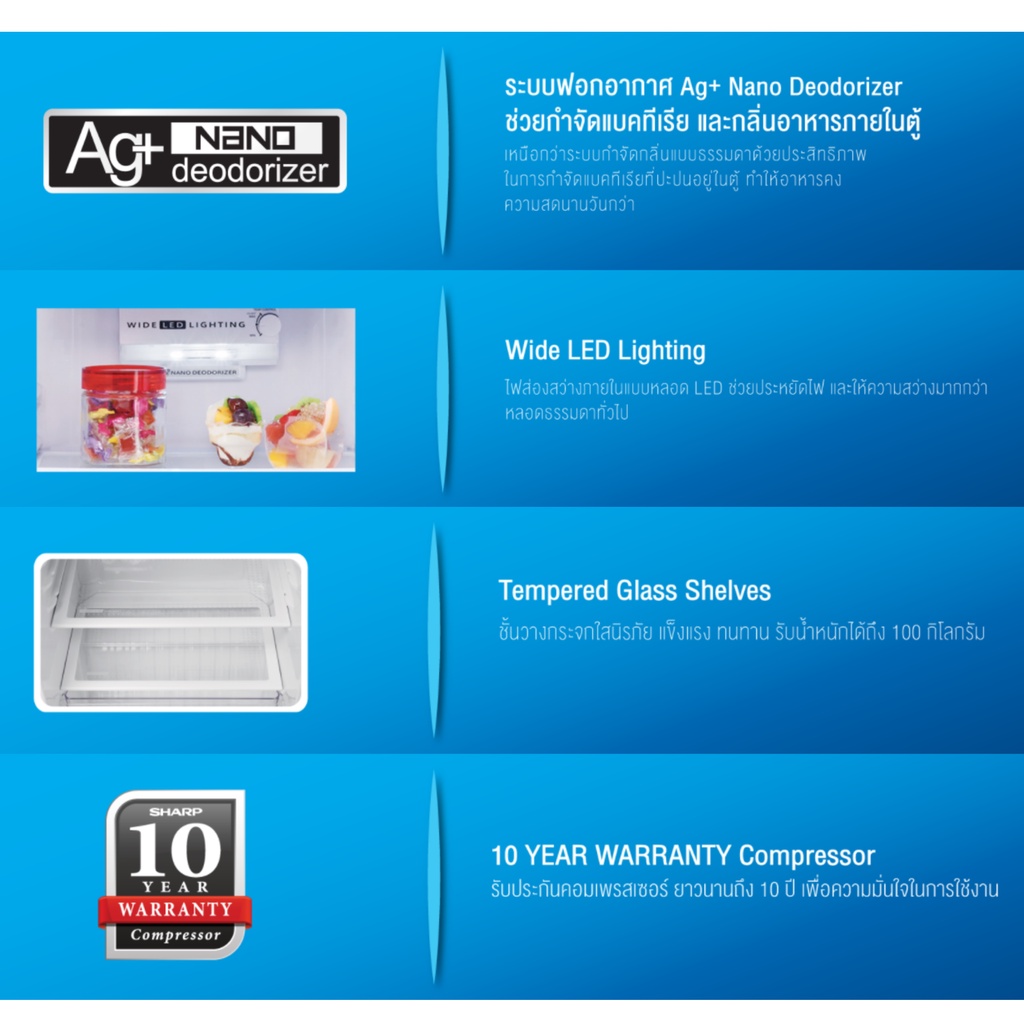 SHARP ตู้เย็น 2 ประตู รุ่น SJ-Y24T-SL ขนาด 7.9 คิว สีเงิน Non-Inverter ( รับประกันศูนย์ 10 ปี )