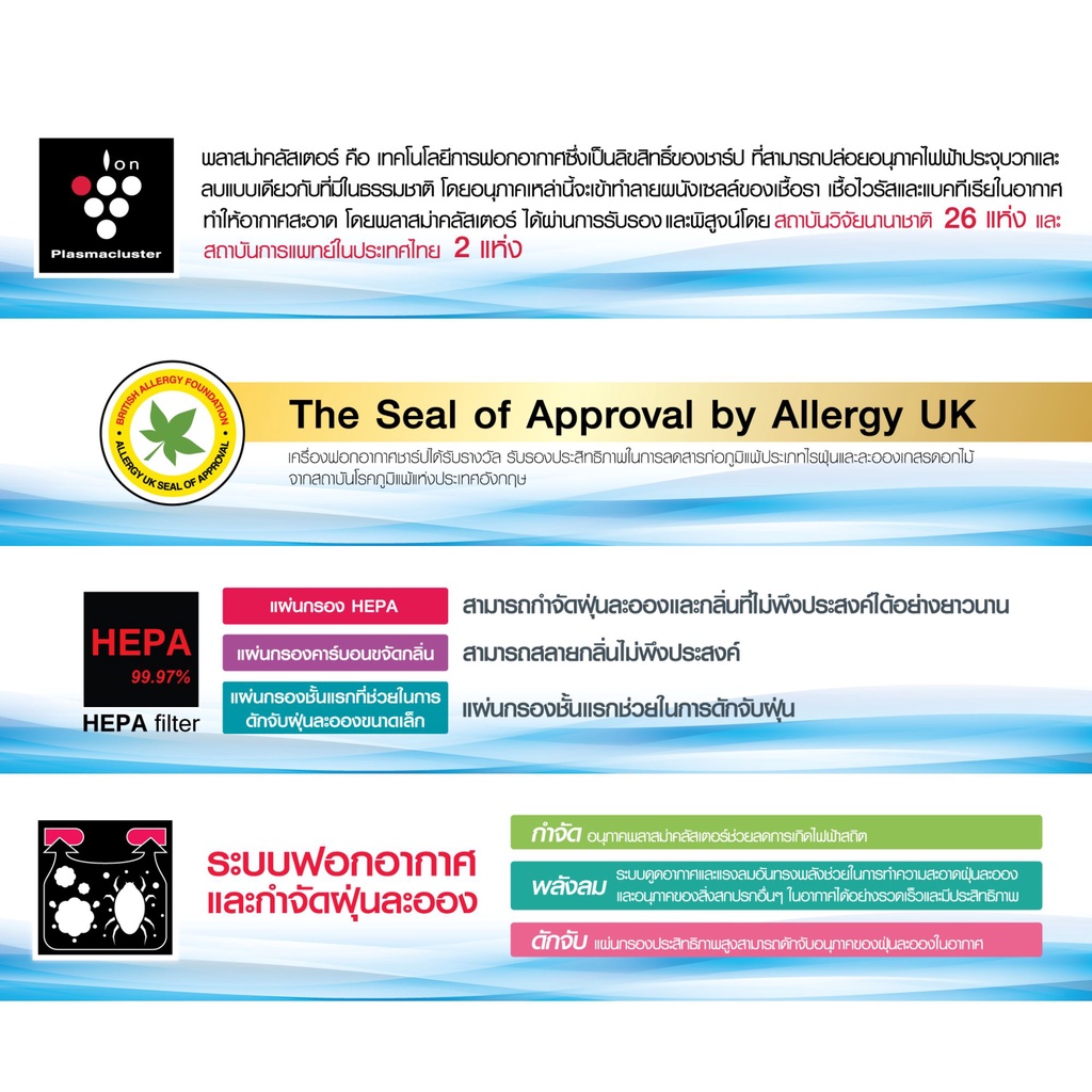 SHARP เคร ื่องฟอกอากาศ รุ่น FP-J30TA 3 สี ชมพู สีฟ้า สีดำ ขนาด 23 ตรม. PLUSMA-CLUSTER ( FP-J60TA )