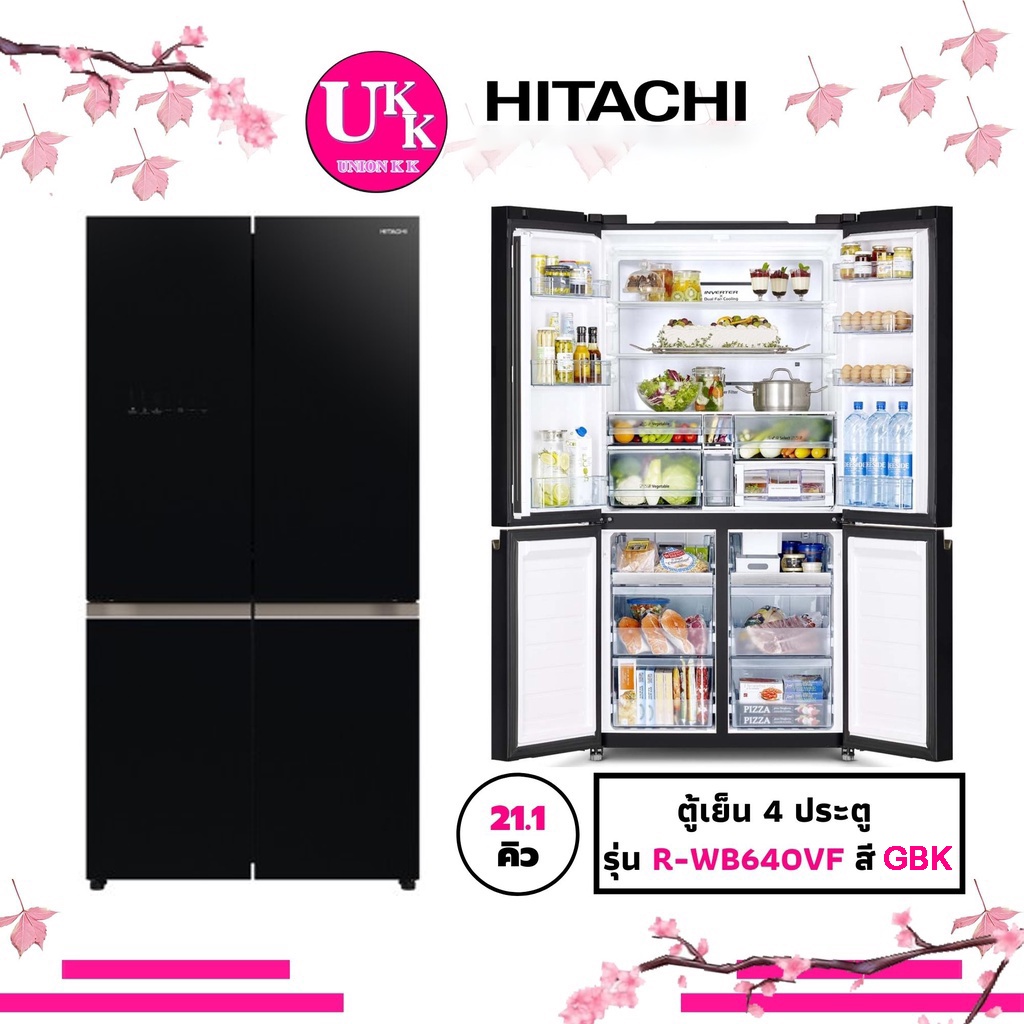 HITACHI ตู้เย็น 4 ประตู รุ่น R-WB640VF ขนาด 20.1 คิว สี GBK / สี GMG INVERTER ( รับประกันศูนย์ 10 ปี )