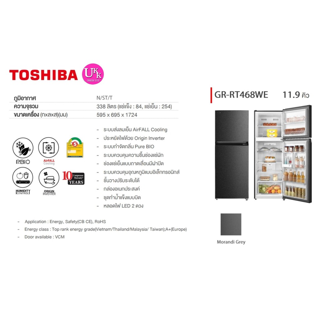 TOSHIBA ตู้เย็น 2 ประตู รุ่น GR-RT466WE-PMTH 11.9คิว สีเทาดำ Origin Inverter ( GR-RT468WE GR-RT466 )
