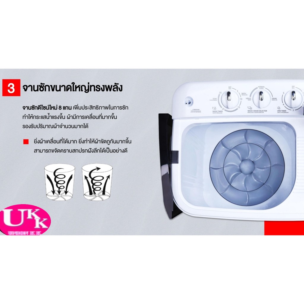 TOSHIBA เครื่องซักผ้า 2 ถัง รุ่น VH-H85MT ขนาด 7.5กก. รับประกันศูนย์ 5 ปี ( เครื่องซักผ้าสองถัง )