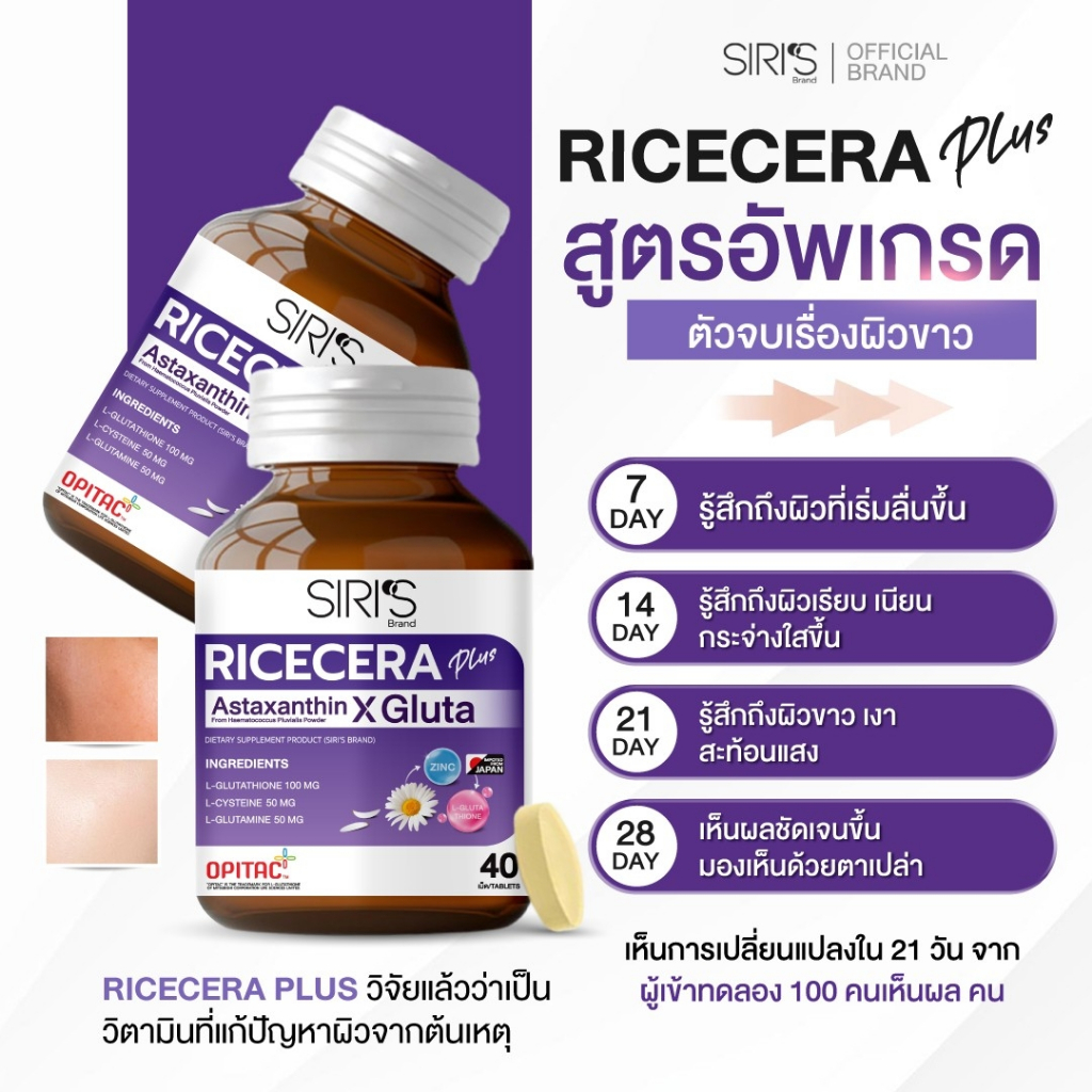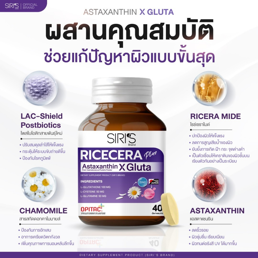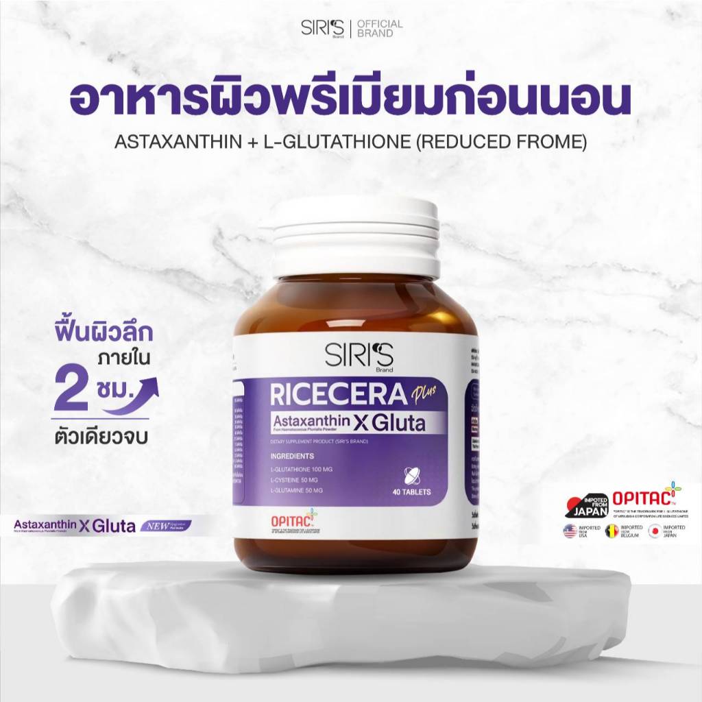 อาหารผิวพรีเมียมก่อนนอน RICECERA Plus Astaxanthin X Gluta ไรซ์เซร่า พลัส แอสต้าแซนธิน-กลูต้าแท้