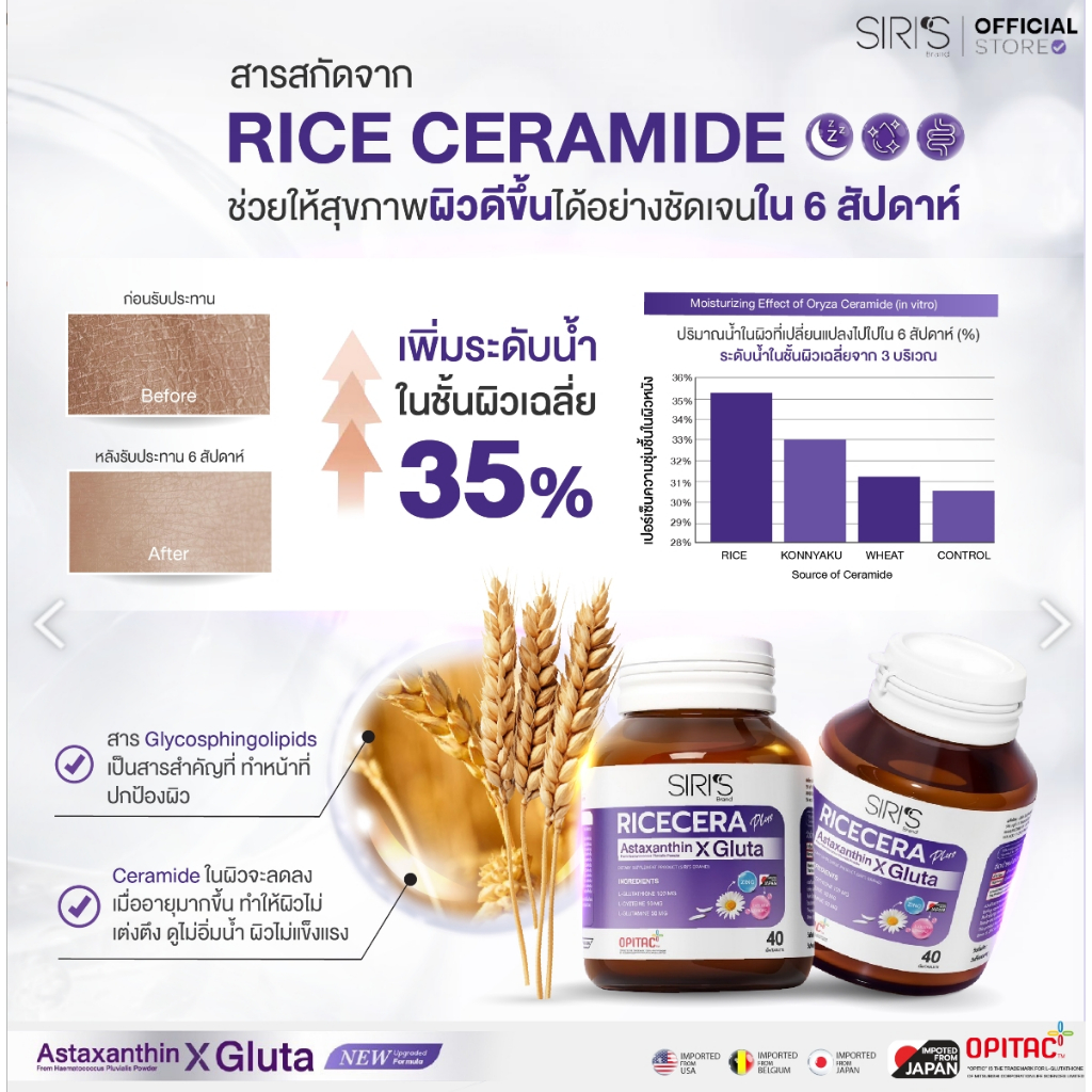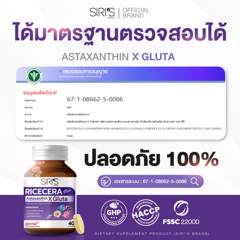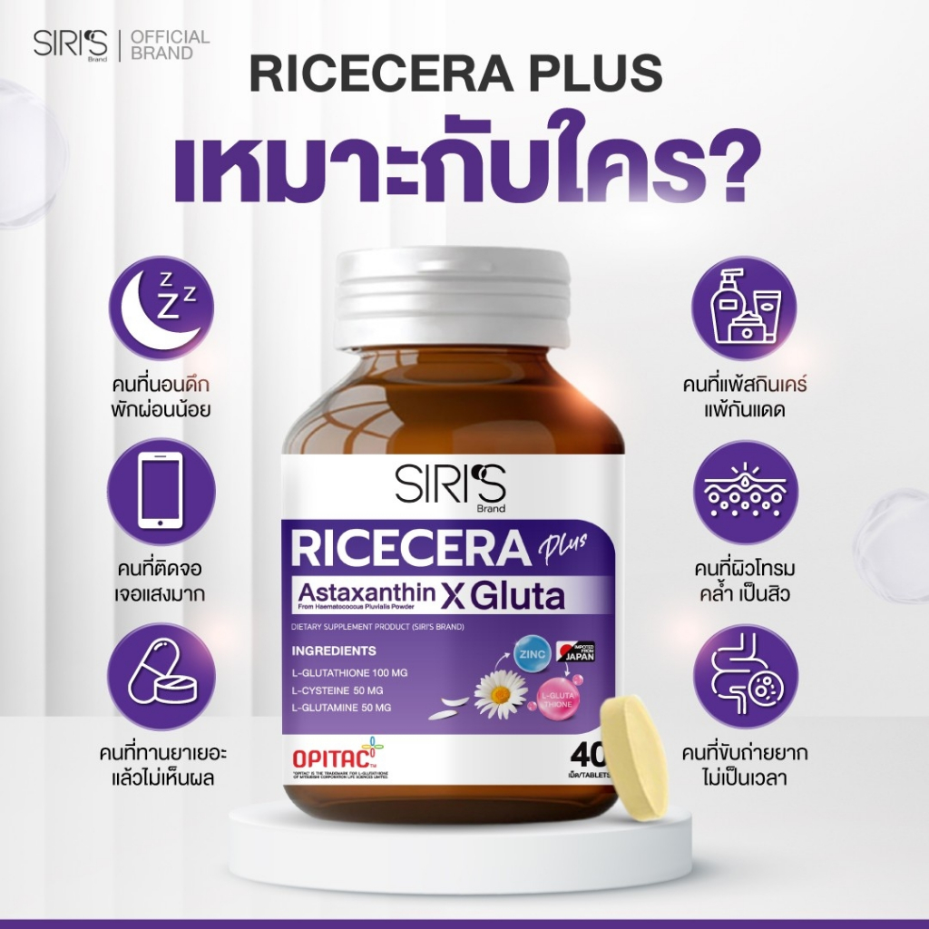อาหารผิวพรีเมียมก่อนนอน RICECERA Plus Astaxanthin X Gluta ไรซ์เซร่า พลัส แอสต้าแซนธิน-กลูต้าแท้