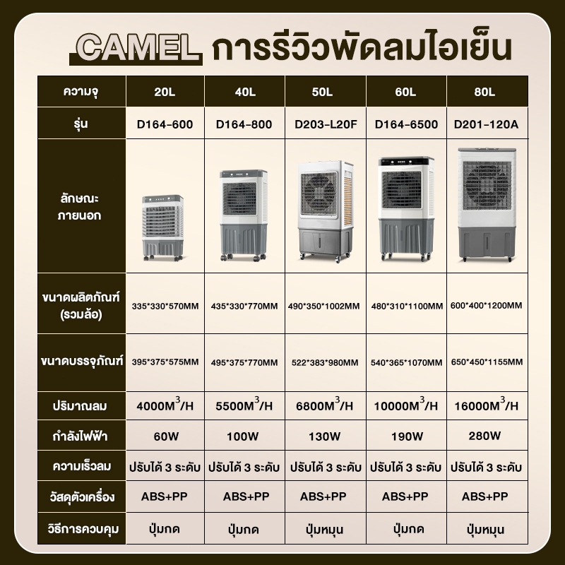 CAMEL พัดลมไอเย็น 80L พัดลมเย็น พัดลมไอน้ำ ลดอุณหภูมิ เพิ่มความชื้น ประหยัดพลังงานและไฟฟ้า