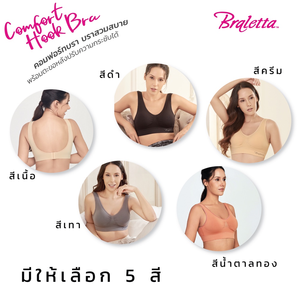 Braletta Comfort Hook Bra Premium บราเล็ทธา คอมฟอร์ทบรา บราไร้โครงพร้อมตะขอหลัง ผ้าพรีเมียมไร้รอยต่อ