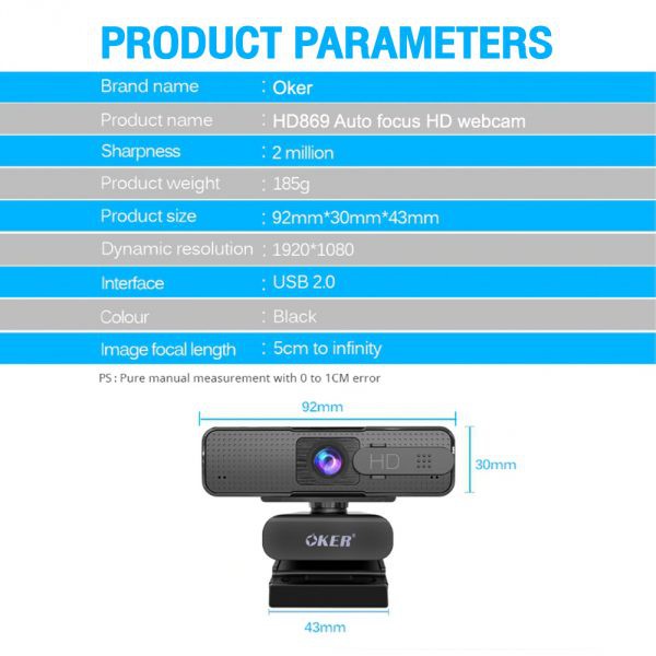 OKER HD869 AUTO FOCUS Full HD 1080 P WEBCAM Microphone Stereo กล้องเว็บแคม ไมค์