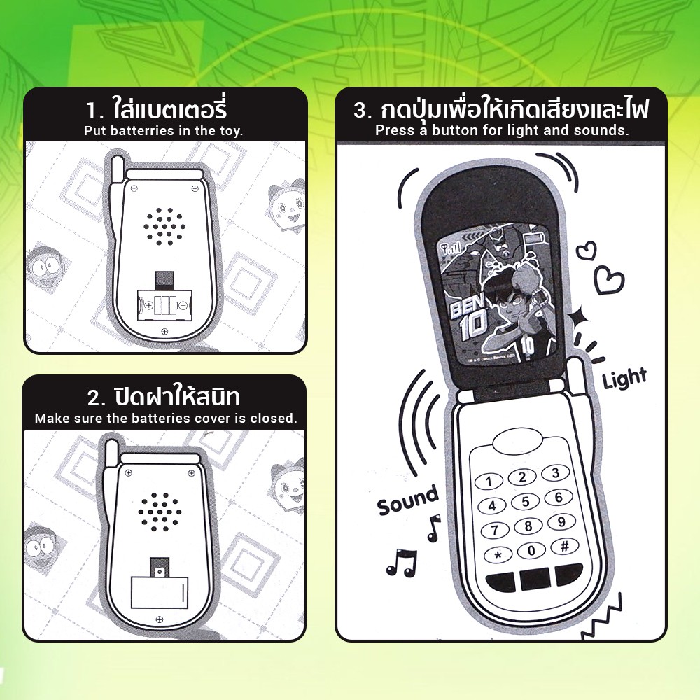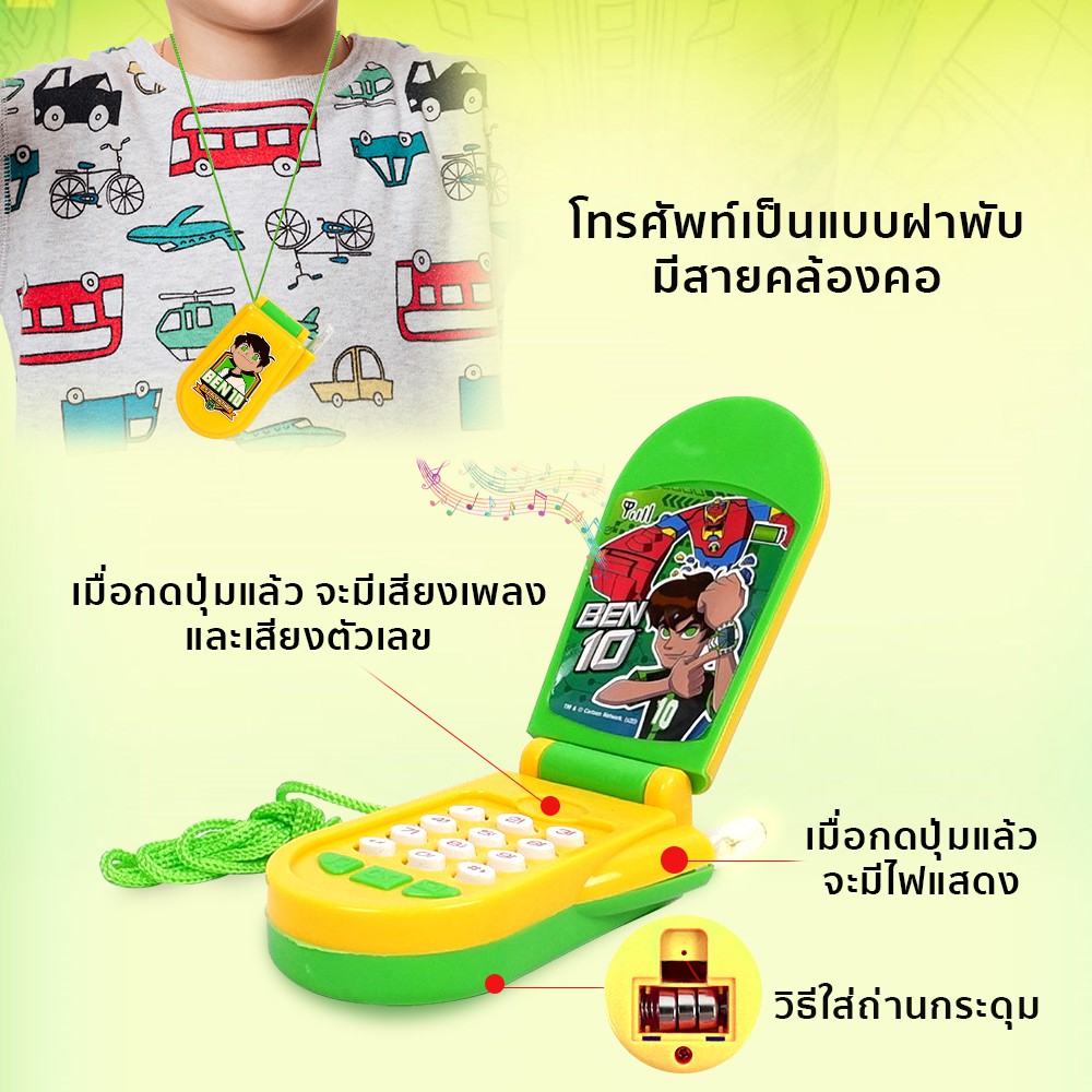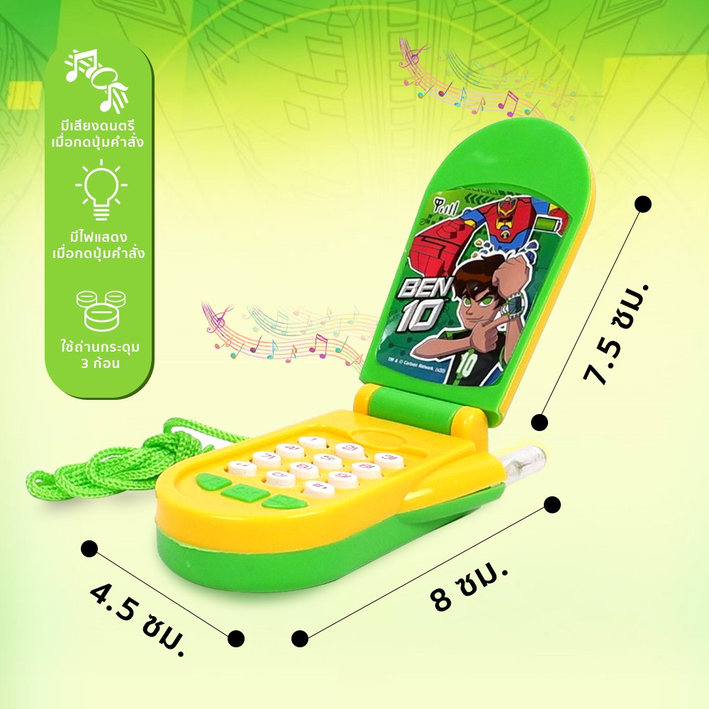 BEN10 ของเล่นเด็ก โทรศัพท์ มือถือ เบนเทน มีเสียง มีไฟ พร้อมอุปกรณ์การเล่น ขนาด ย 4.5*ก.8*ส 7.5 ซม. ของเล่นเสริมพัฒนาการ