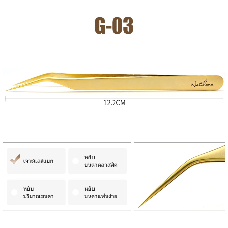 NATUHANA แหนบสgตนเลส สําหรับติดขนตาปลอม