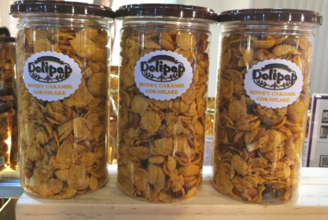 คอร์นเฟลกคาราเมลน้ำผึ้งอร่อยมากรสชาติเข้มข้นแบบกระปุกผสมอัลมอนด์และเม็ดมะม่วง /คอนเฟลก/ CFL