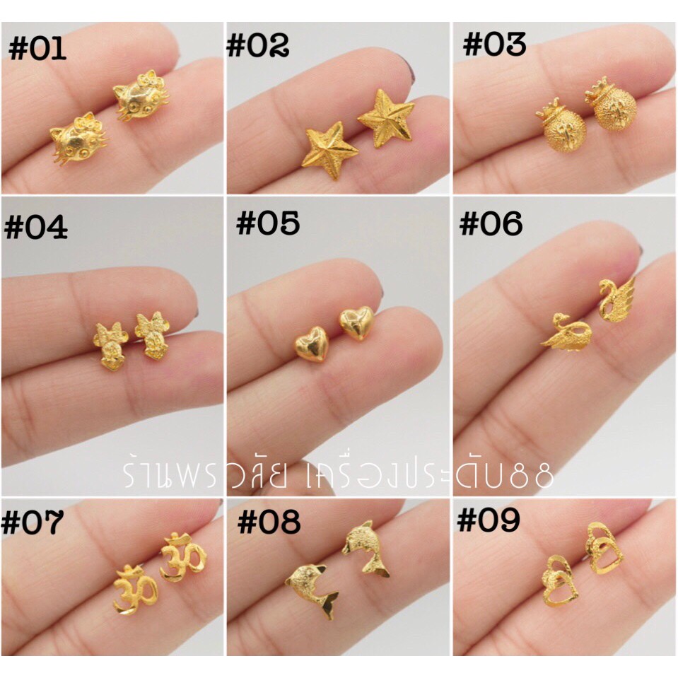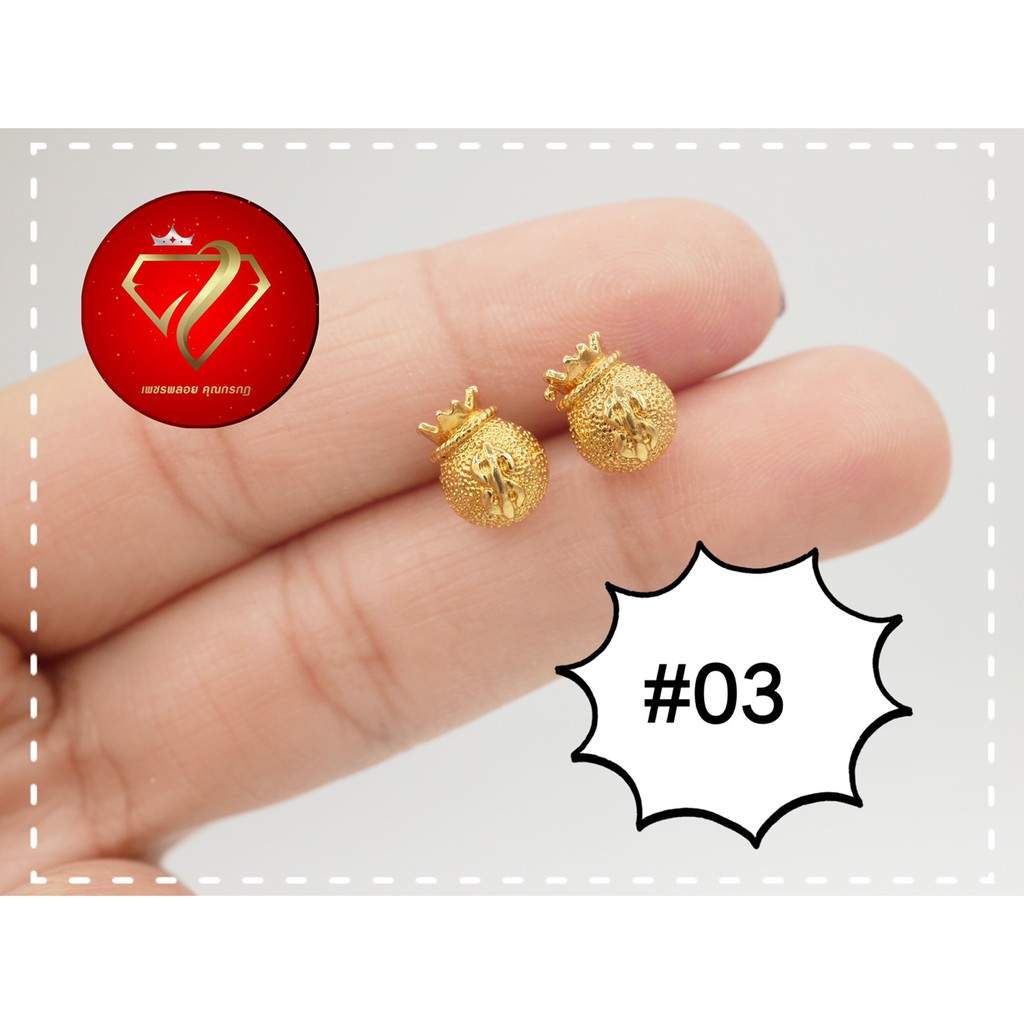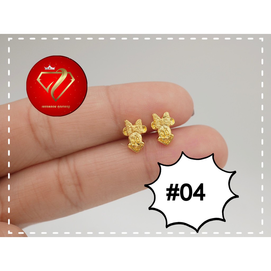 ต่างหูไ มครอนแบบแป้น แบบก้านเสียบติดหู ถ่ายจากสินค้าจริงสวยตรงปก