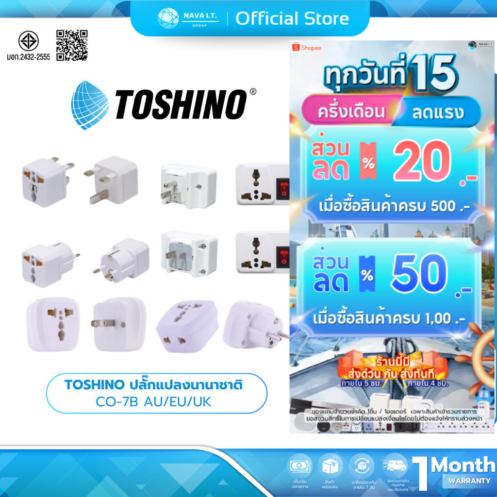 (มีส่งด่วน) TOSHINO ปลั๊กแปลงนานาชาติ CO-7B AU/EU/UK (ยุโรป,ญี่ปุ่น,ฮ่องกง) TRAVEL ADAPTER