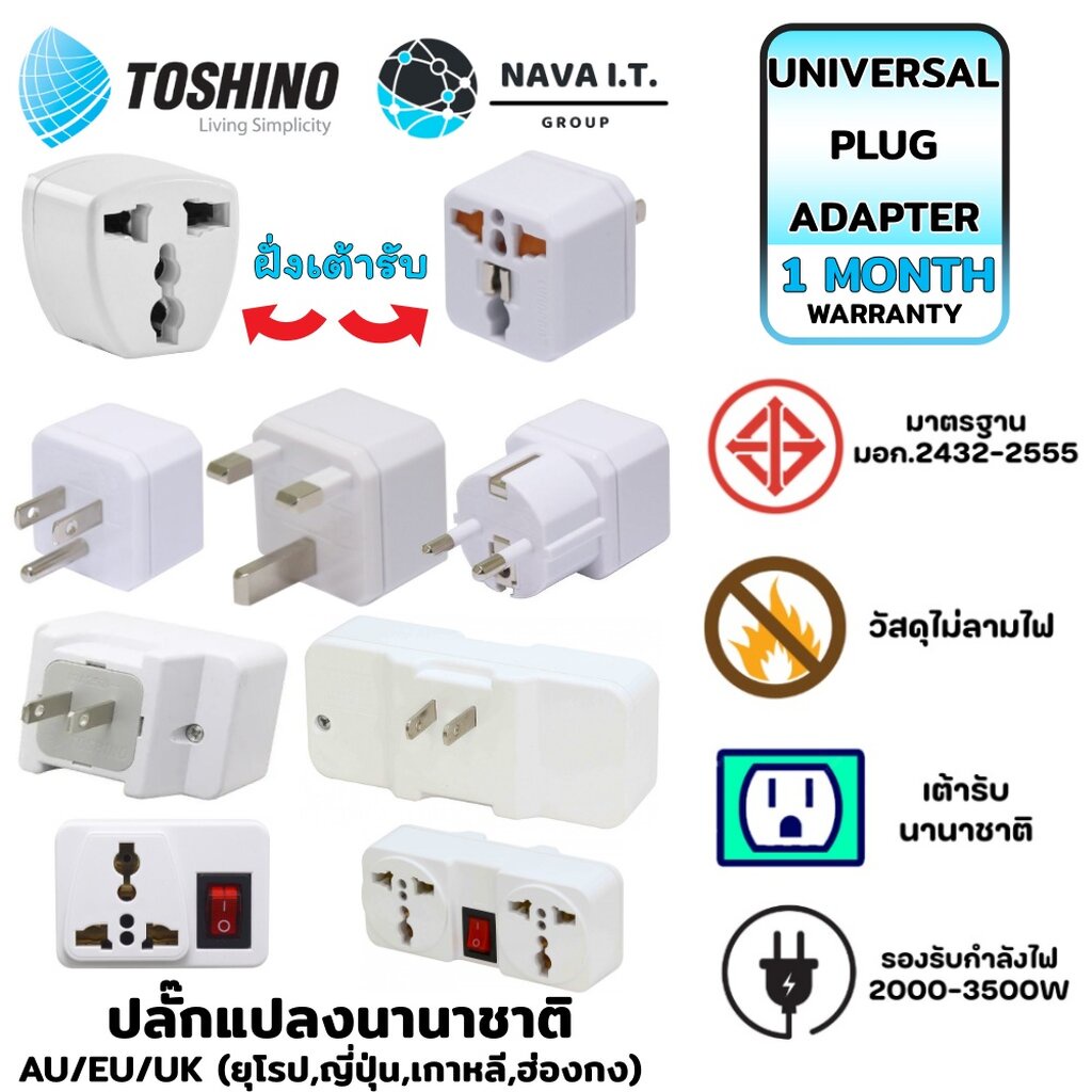 🛵มีส่งด่วน💨 TOSHINO ปลั๊กแปลงนานาชาติ CO-7B/TW-2/CO-6S/AU/EU/UK (ยุโรป,ญี่ปุ่น,ฮ่องกง)